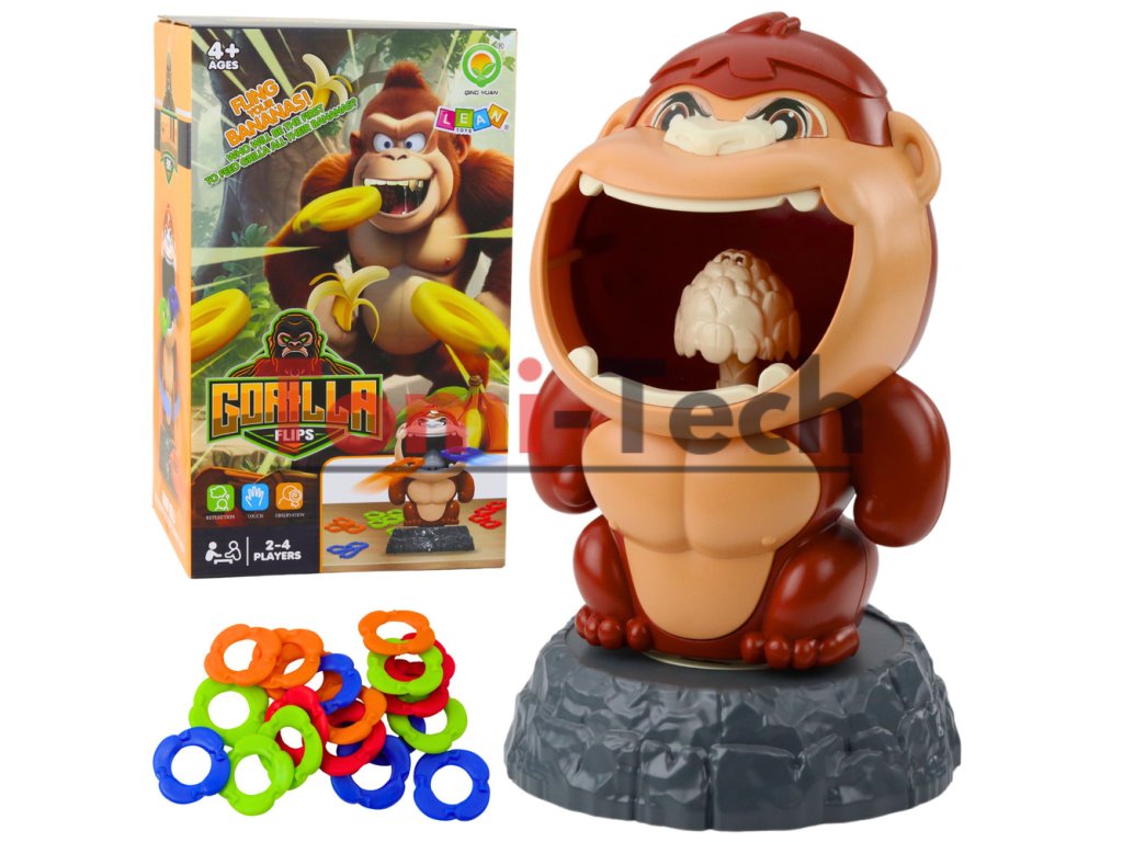 Sada obsahuje 20 farebných kruhov v 4 farbách a veľkú figúrku gorily na stabilnom podstavci. Gorila sa automaticky otáča po zapnutí hry a hráči musia preukázať reflexy, presnosť a precíznosť, aby získali čo najviac bodov.