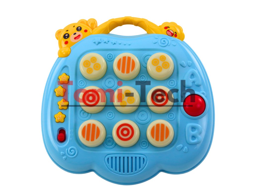 Hračka je napájaná batériami, čo zaisťuje plynulé hranie a dynamická zmena podsvietených tlačidiel robí z každého prístupu k hre novú výzvu. Pevná konštrukcia a zaoblené hrany robia hračku bezpečnou na používanie.