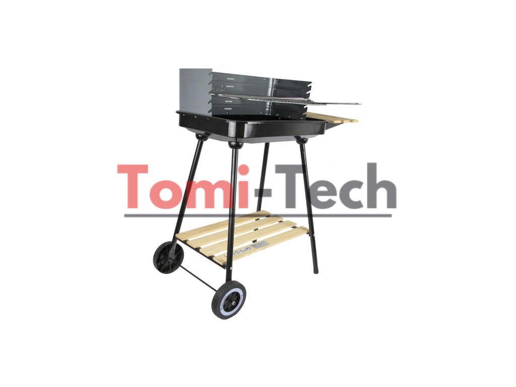 Obdĺžnikový gril Master MG905 je pevný a praktický gril vyrobený zo smaltovanej ocele. Má chrómovaný oceľový rošt s 5-polohovým nastavením výšky, misu s rozmermi 58 x 38 cm a výšku grilu 83 cm. Kolieska umožňujú jednoduché premiestňovanie. Dve police (spodná a bočná), ktoré tento model má, sú tiež veľmi užitočné.
