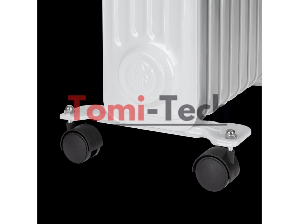 Olejový radiátor Teesa je navrhnutý pre jednoduchú prenosnosť. Má praktickú rukoväť a štyri otočné kolieska, ktoré vám umožňujú ľahko premiestňovať zariadenie z miestnosti do miestnosti. Vstavaný priestor pre napájací kábel navyše poskytuje úhľadné uloženie a zabraňuje jeho zamotaniu.