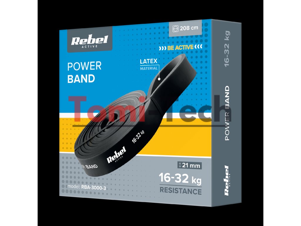 Latexová posilňovacia guma - Power Band PL-3, čierna 16-32 kg REBEL ACTIVE
