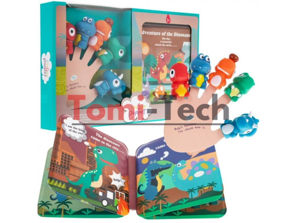 Táto sada prstových maňušiek a mäkká knižka o dinosauroch je určená pre deti od 3 rokov. Prstoví maňušky sú pre deti skvelou zábavou a zároveň účinnou vzdelávacou pomôckou. S touto sadou budú môcť deti alebo dospelí hrať divadelné hry, v ktorých sú hlavnými postavami dinosaury.