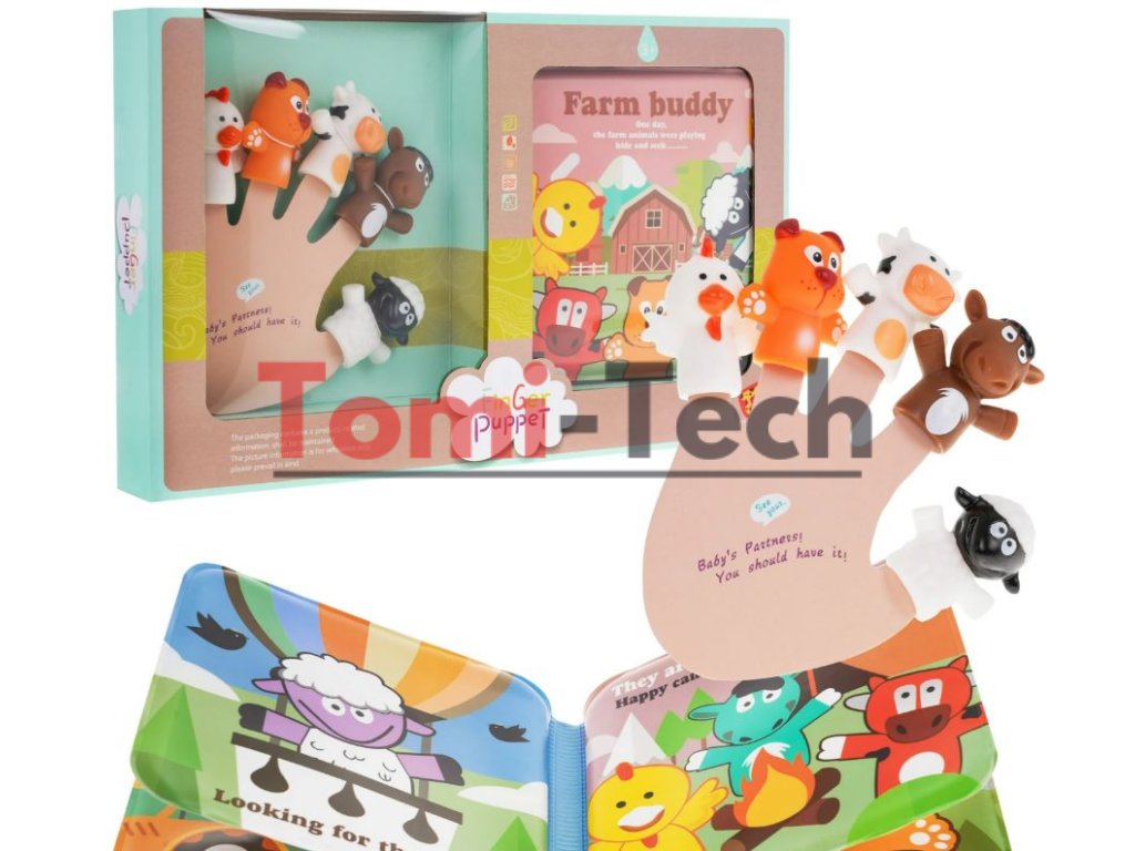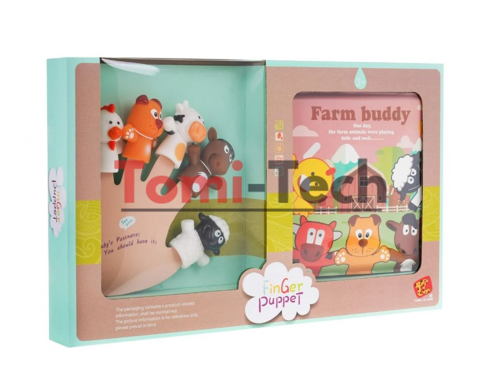 Táto sada prstových maňušiek a mäkká knižka o zvieratkách je určená pre deti od 3 rokov. Prstoví maňušky sú pre deti skvelou zábavou a zároveň účinnou vzdelávacou pomôckou. S touto sadou budú môcť deti alebo dospelí hrať divadelné hry, v ktorých sú hlavnými postavami zvieratka, ako je kura, pes, somár, krava alebo jahňa.