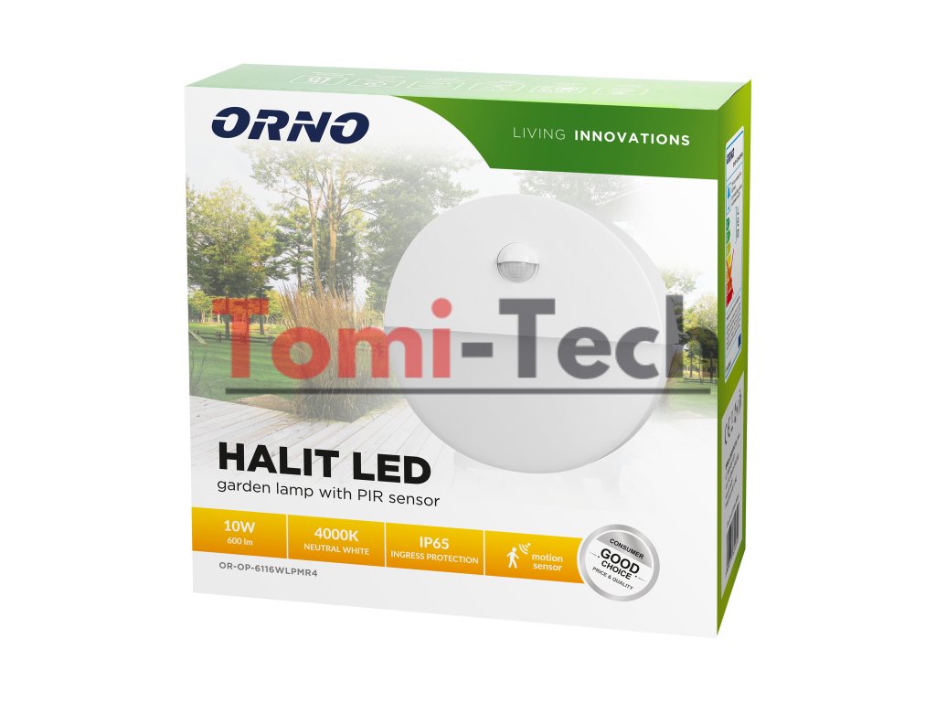 HALIT LED 10W, záhradné svietidlo s pohybovým senzorom 140°, 600lm, IP65, 4000K, IK10, biele