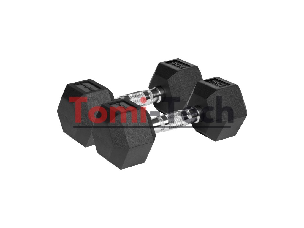 Pogumované liatinové činky HEX 2x7,5 kg REBEL ACTIVE