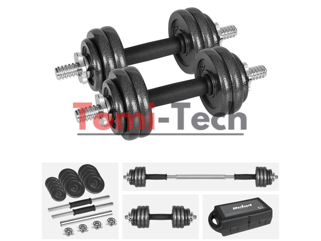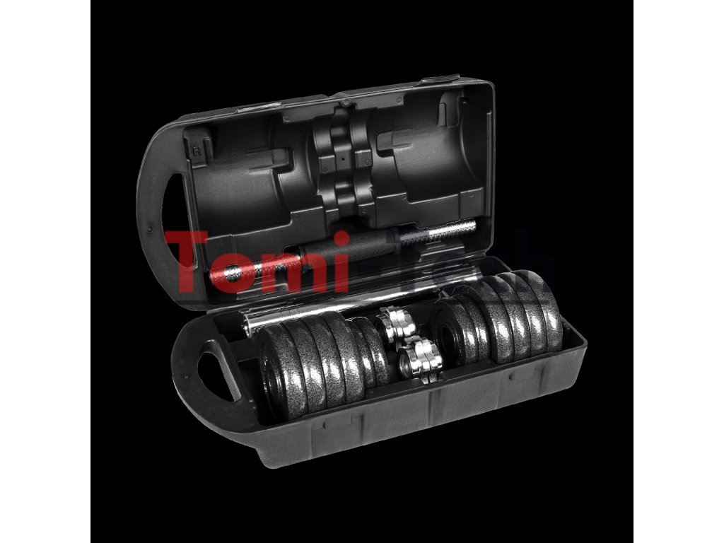 Nastaviteľné liatinové činky v kufríku s tyčou, sada 15 kg REBEL ACTIVE