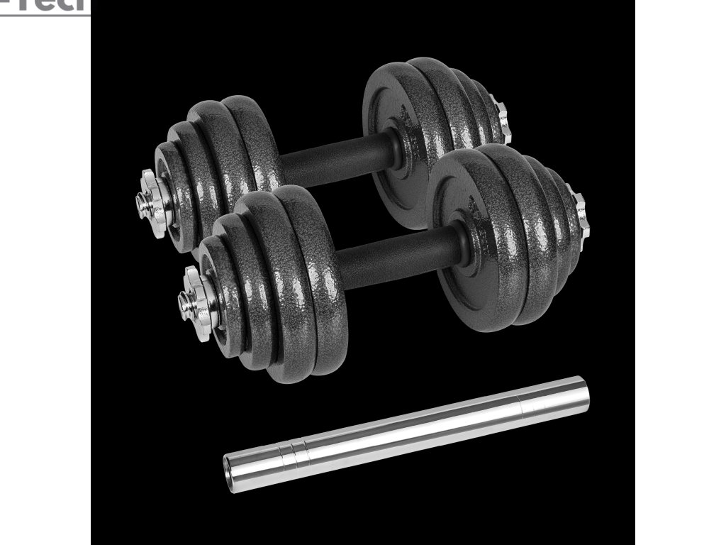 Nastaviteľné liatinové činky v kufríku s tyčou, sada 30 kg REBEL ACTIVE