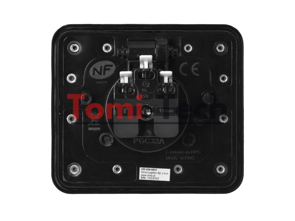 Hermetická štvorcová elektrická zásuvka, IP55Dodatočné parametre