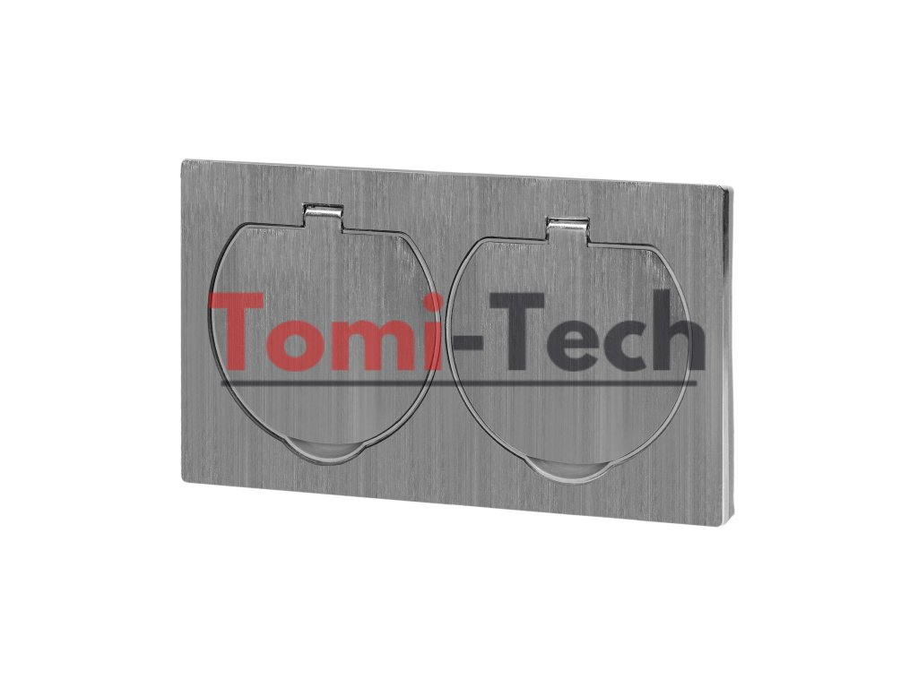 Hermetická dvojitá elektrická zásuvka, nehrdzavejúca oceľ IP55