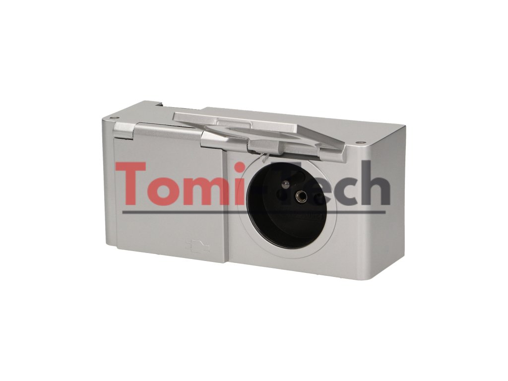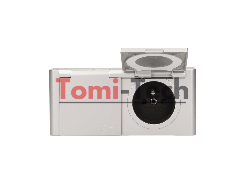 Hermetická zásuvka pod skrinku, IP44, 2x2P+Z, strieborná