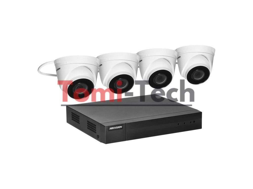 Monitorovacia sada HIKVISION IPKIT-T4-4CH so 4 kopulovitými IP kamerami HIKVISION IP-CAM-T240H a 4-kanálovým rekordérom HIKVISION NVR-4CH, rozlíšenie 4Mpx, napájanie PoE, IR osvetlenie, digitálna redukcia šumu, IP67.