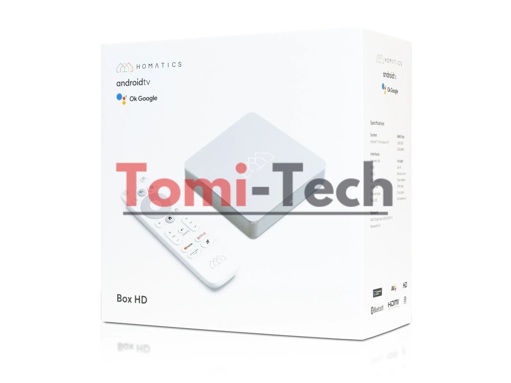 Homatics Box HD je jedno z najvýkonnejších multimediálnych HD zariadení na trhu, ktoré premení váš bežný televízor na výkonný inteligentný televízor. Operačným systémom je oficiálny Android TV 11. Toto malé zariadenie obsahuje výkonný procesor Amlogic S805X2, ktorý je podporovaný 1,5 GB DDR RAM a 32 GB eMMC Flash pamäťou.