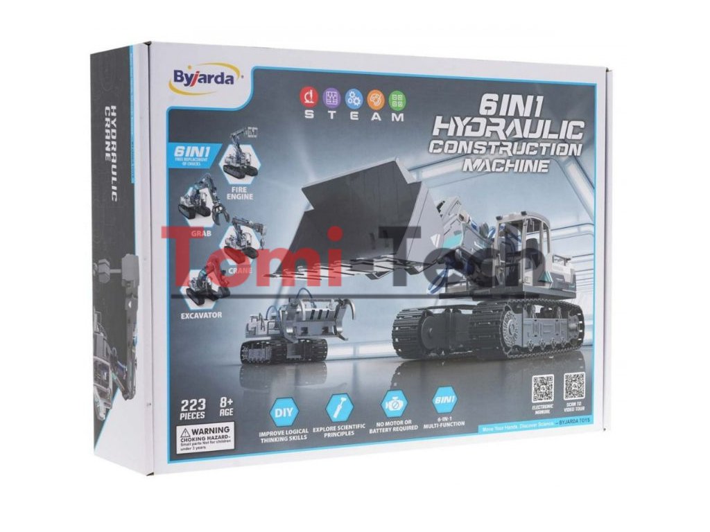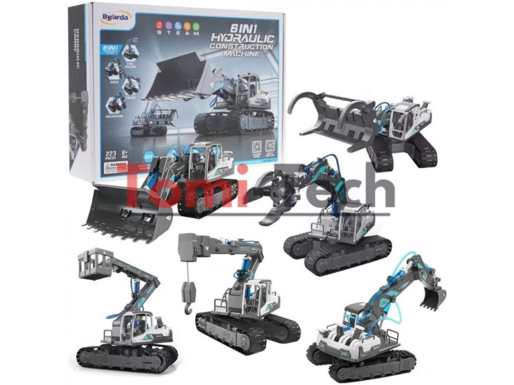Vedecká súprava 6v1 - vozidlá na zostavenie. Celá súprava pozostáva z 223 prvkov, z ktorých môžete vytvoriť 6 kombinácií vozidiel. Vozidlá nepotrebujú batérie a sú poháňané hydraulickou vodou. Hydraulická sila je zodpovedná za činnosti, ako je uchopenie, zdvíhanie a spúšťanie. Sada obsahuje podrobný návod na montáž pre každý model.