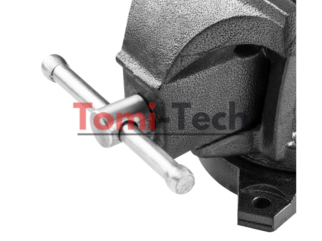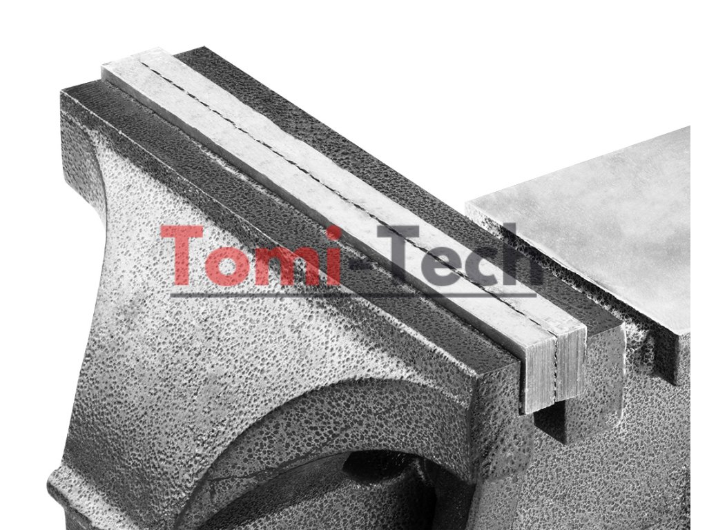 Otočný zverák pre kovoobrábanie 200 mm s nákovkou. Základňa z tvárnej liatiny, telo zo sivej liatiny a čeľuste z kalenej ocele.Dodatočné parametre