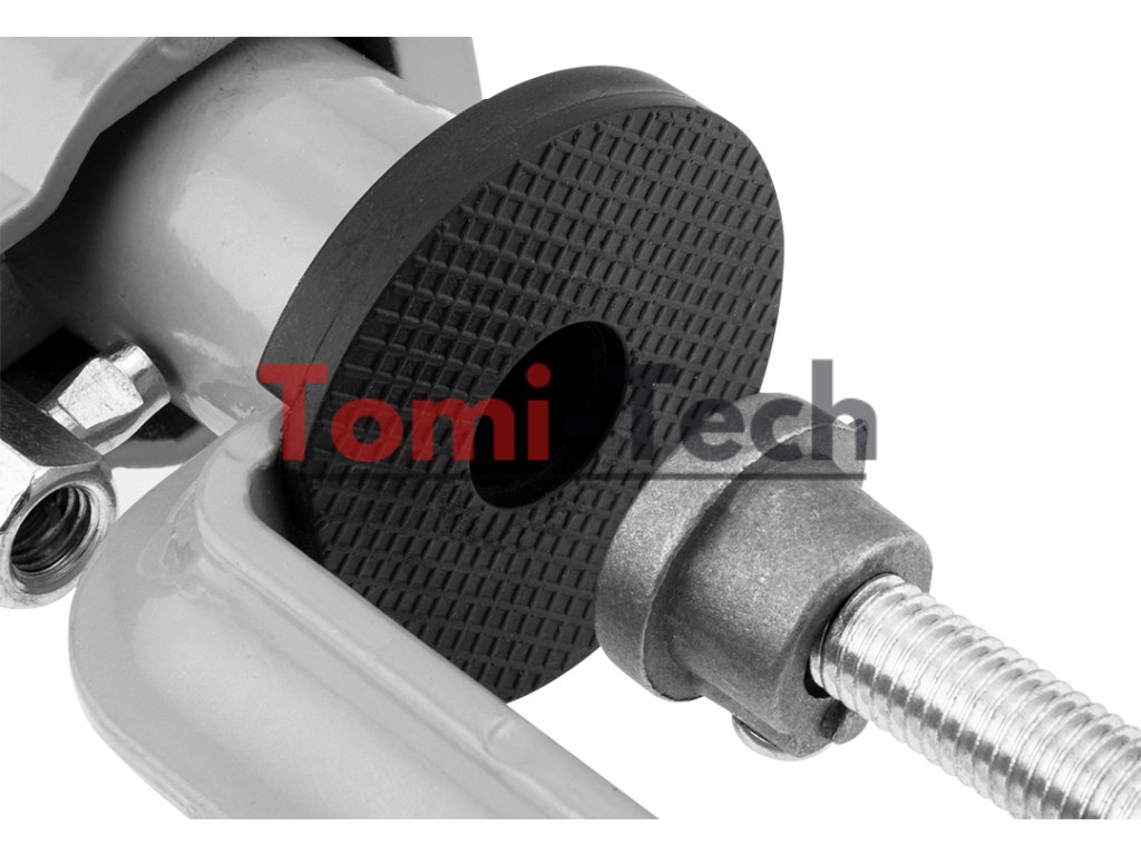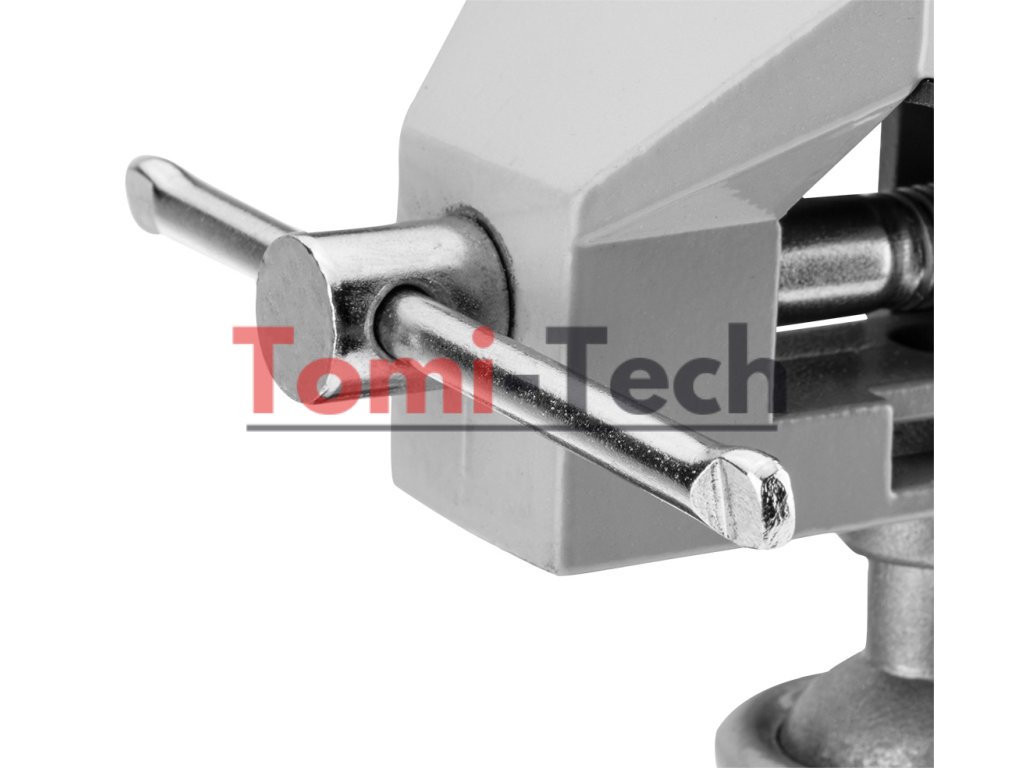 70 mm viacpolohový zverák. Telo z kovaného hliníka, oceľová rukoväť. Gumové chrániče čeľustí.Dodatočné parametre