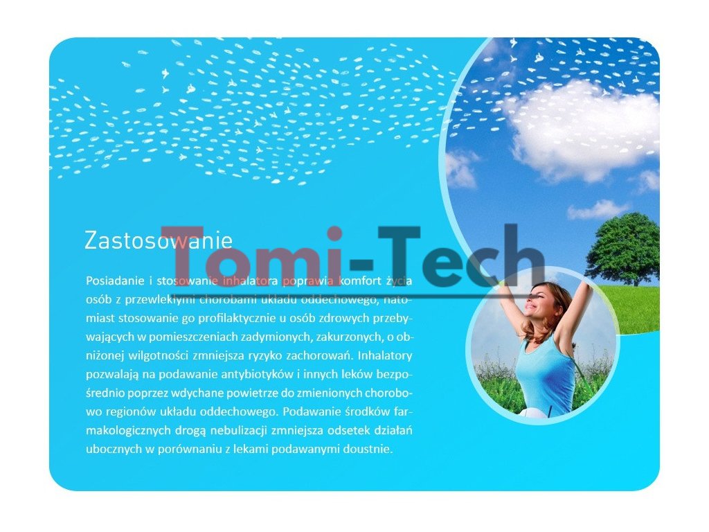 Inhalátor/rozprašovač Promedix? s piestovým kompresorom je prispôsobený na nepretržitú prevádzku, takže sa dá použiť pri chronických ochoreniach. Bol navrhnutý s ohľadom na najmenšie deti. Inhalátor Krówka si vaše dieťa zamiluje inhaláciu. Táto profesionálna zdravotnícka pomôcka je umiestnená v štýlovom puzdre. Môže sa použiť na podávanie antibiotík a liekov na bronchiálne ochorenia. Bezpečný pre deti vďaka špeciálne navrhnutému zaoblenému tvaru bez ostrých hrán. Kryt je tepelne izolovaný a vyrobený z najkvalitnejšieho plastu, ktorý spĺňa prísne bezpečnostné normy. Inhalátor Promedix® získal certifikát lekárskej kvality. Všetko príslušenstvo k inhalátoru Promedix® je lekársky certifikované pre bezpečnosť vášho dieťaťa.