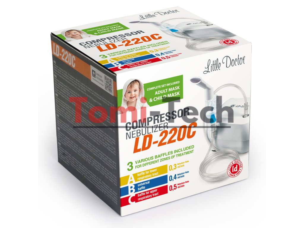 Piestový inhalátor LD-220C je kompaktné zariadenie určené na nepretržitú prevádzku, maximálne 20 minút, čo umožňuje použitie širokého spektra inhalačných liekov. Vysokokvalitné spracovanie a perfektné zladenie komponentov zabezpečujú tichú a spoľahlivú prevádzku.