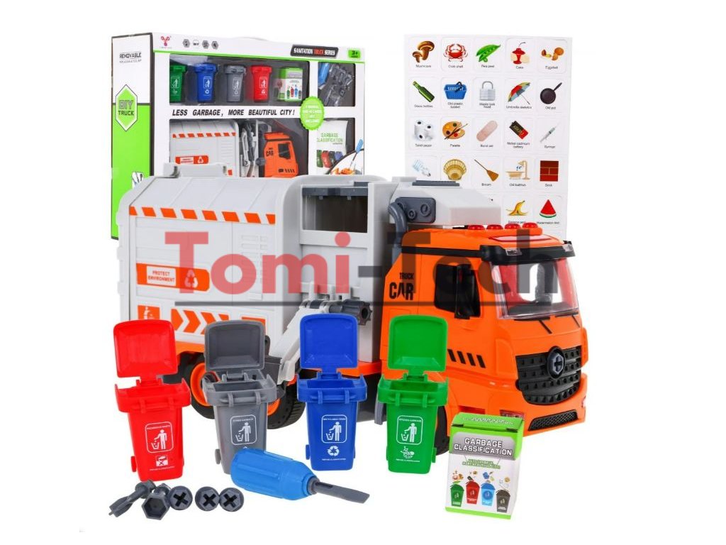 Interaktívne smetiarske auto je dokonalá vzdelávacia hračka pre deti od 3 rokov, ktorá kombinuje hranie s učením o ekológii. Zábava a učenie: Deti sa môžu tešiť na rozoberateľný model auta so svetelnými a zvukovými efektmi. Vďaka priloženému skrutkovaču si môžu auto rozoberať a zložiť podľa vlastnej fantázie. Ekologická výchova: Naučí vaše dieťa triediť odpad pomocou priloženej obrazkovej knižky, ktorá vysvetľuje, do ktorého kontajnera patria rôzne druhy odpadu. Funkčné diely: Auto obsahuje držiak na manipuláciu a vyklápací mechanizmus pre kontajnery so separovaným odpadom. V balení sú zahrnuté štyri farebne rozlíšiteľné kontajnery symbolizujúce rôzne druhy odpadu.