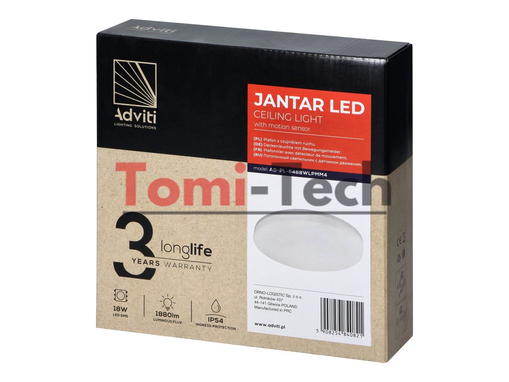 JANTAR LED 18W, stropné svietidlo s mikrovlnným senzorom pohybu, 1880lm, IP54, 4000K, tienidlo z PCDodatočné parametre