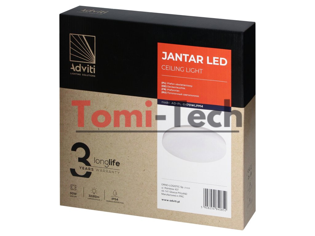 JANTAR LED 30W, stropné svietidlo, 3225lm, IP54, 4000K, tienidlo z PCDodatočné parametre