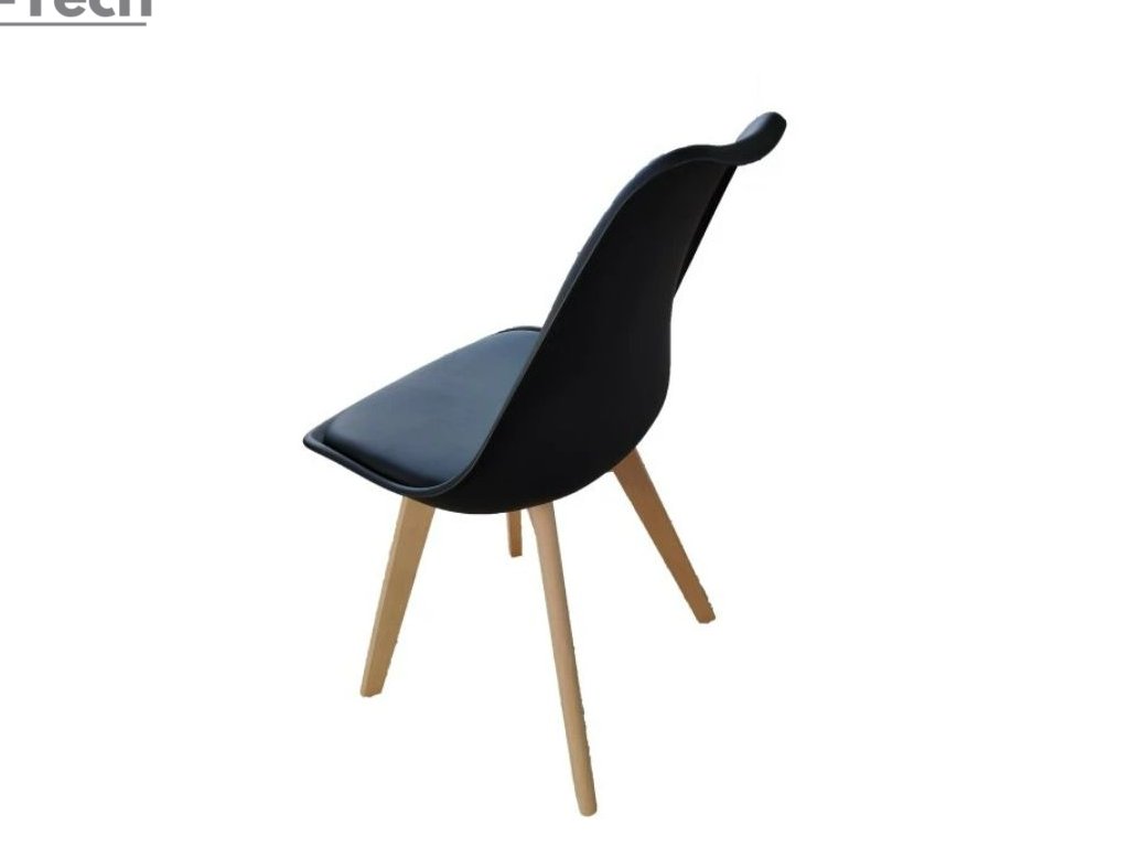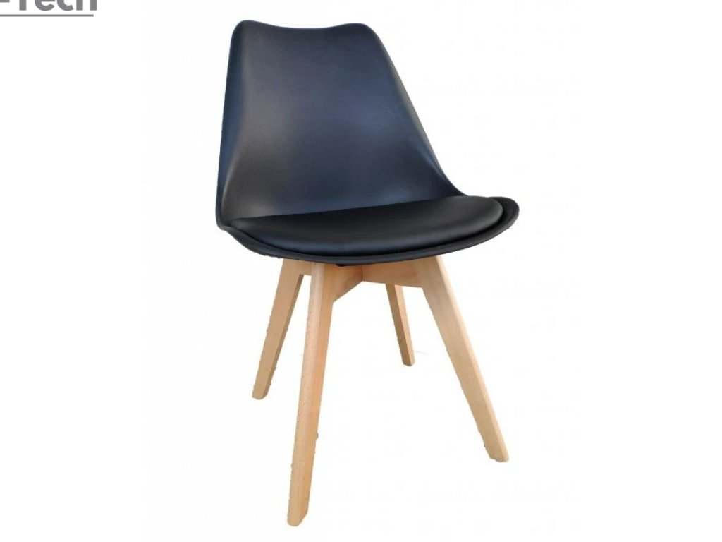 Jedálenská stolička s tvarovaným plastovým sedadlom s nohami z bukového masívu v prírodnom odtieni. Mäkký čalúnený vankúš z ekologickej kože zabezpečí pohodlné sedenie. Materiál je ľahko umývateľný, jednoduchý na údržbu. Vďaka svojmu nezabudnuteľnému dizajnu sú vhodné do kuchyne, na záhradu, terasu ako aj do pracovní.