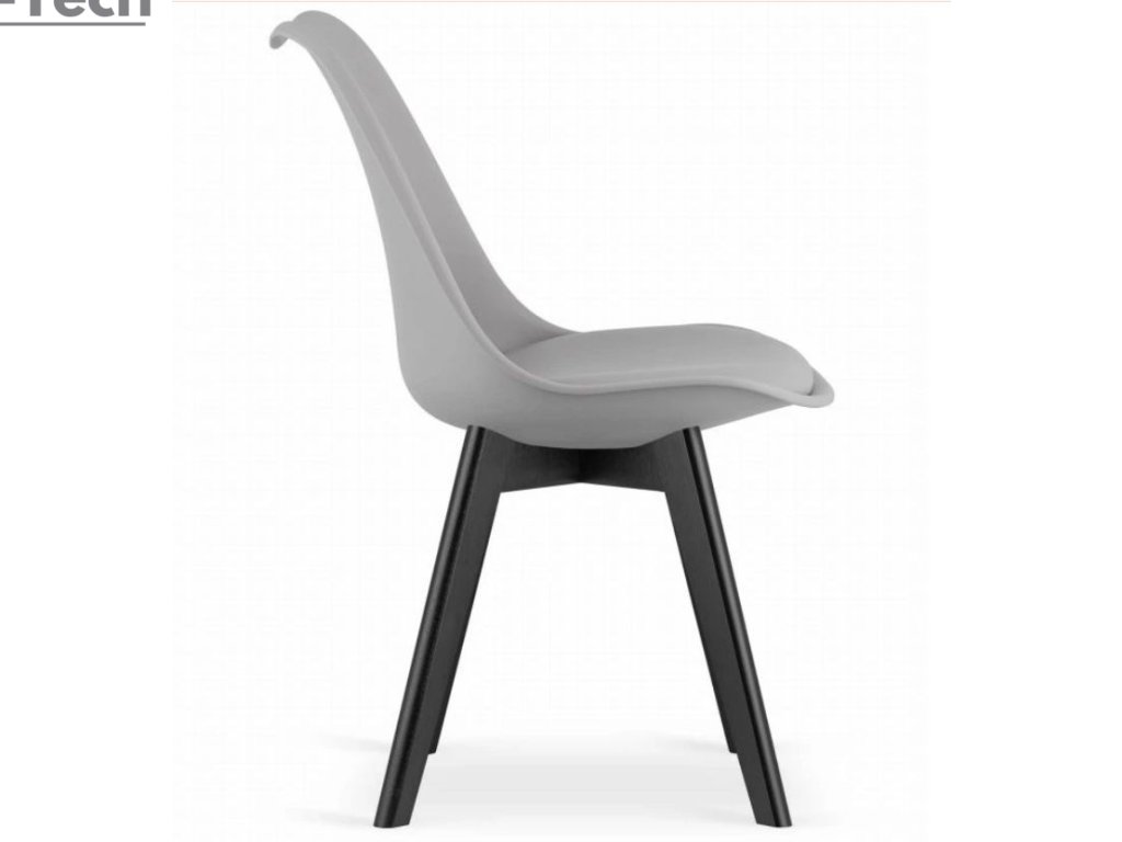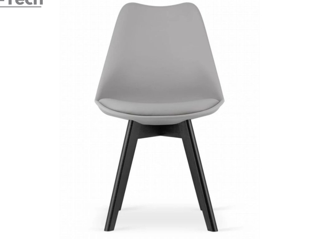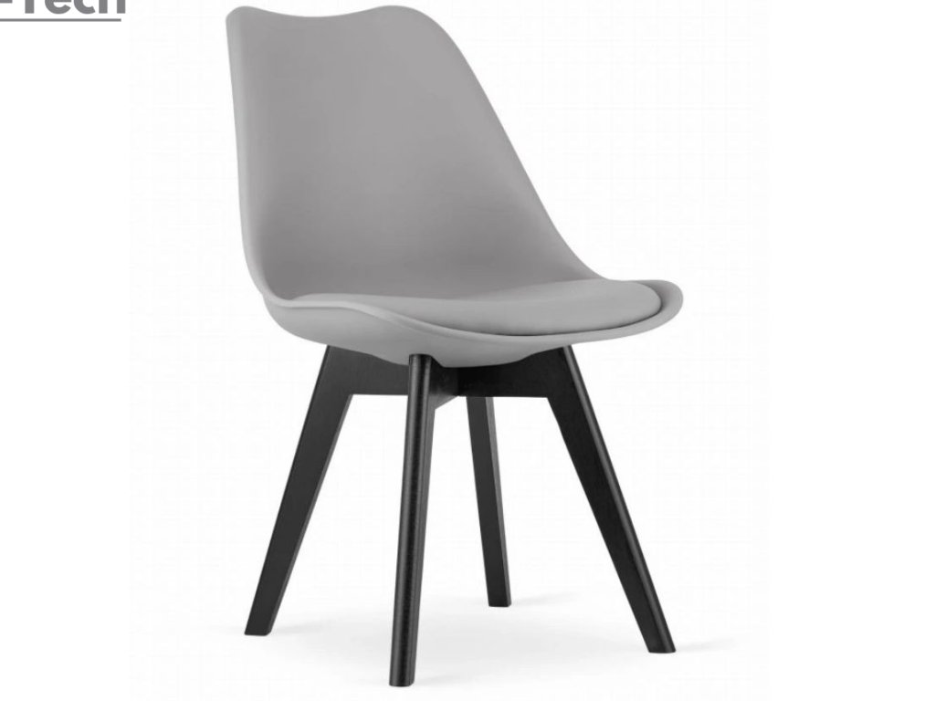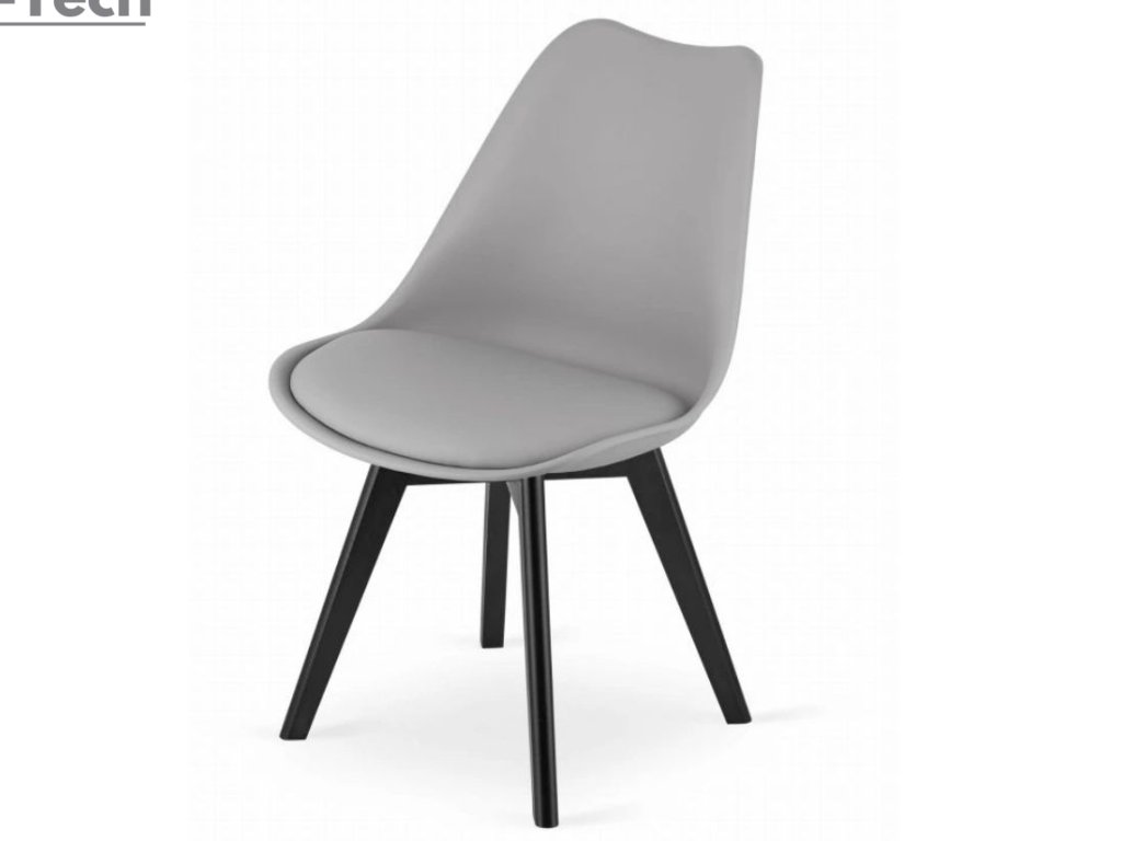 Jedálenská stolička s tvarovaným plastovým sedadlom s nohami z bukového masívu v zaujímavom svetlo šedom prevedení. Mäkký čalúnený vankúš z ekologickej kože zabezpečí pohodlné sedenie. Materiál je ľahko umývateľný, jednoduchý na údržbu. Vďaka svojmu nezabudnuteľnému dizajnu sú vhodné do kuchyne, na záhradu, terasu ako aj do pracovní.