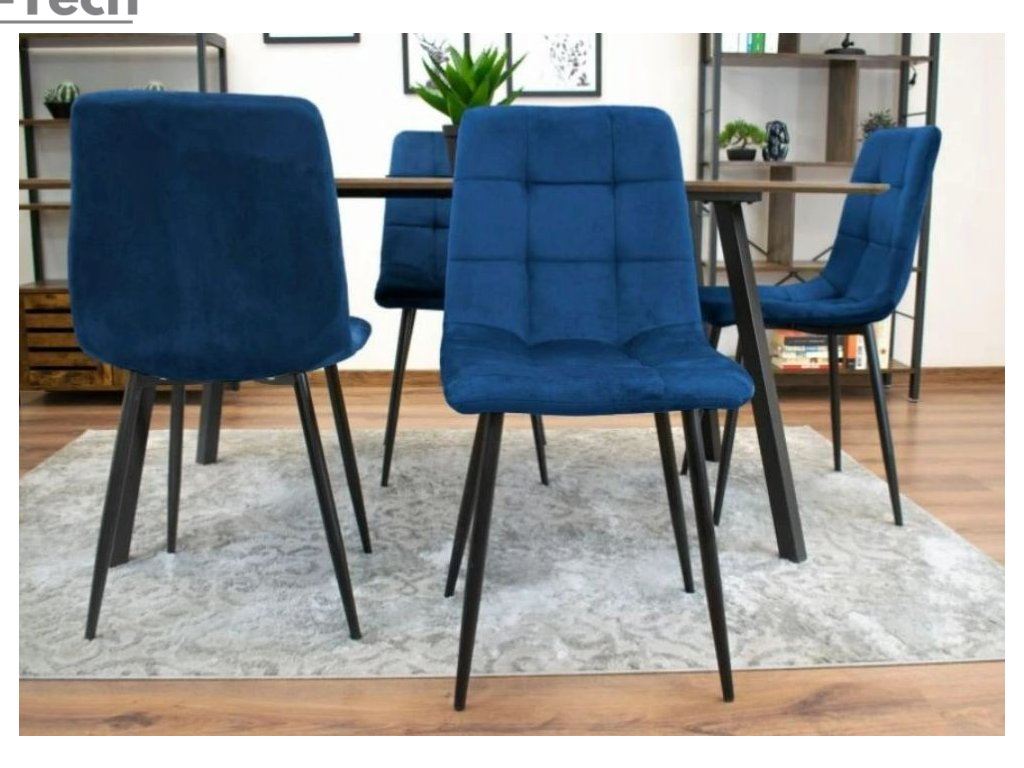 Elegantná stolička v škandinávskom štýle potiahnutá velúrom. Štýlová modrá farba dodá štýl každej miestnosti! Krásna a elegantná jedálenská stolička v zaujímavom dizajne, kvalitné spracovanie zabezpečuje pohodlnosť a štýl produktu. Sedadlo a operadlo sú pokryté velúrovou textíliou. Kovové nohy dodávajú každému bytu jedinečný efekt. Ergonomicky tvarované sedadlo poskytne pohodlie pri sedení.
