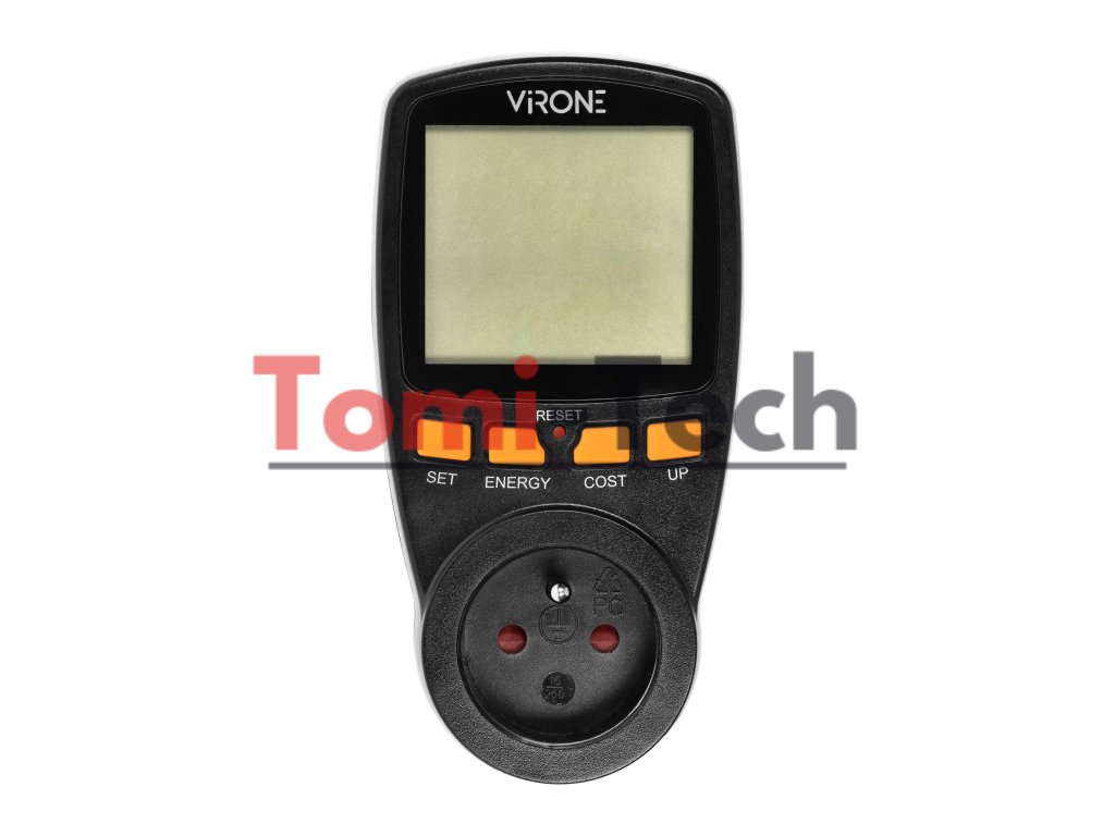 Jednotarifný wattmeter, kalkulačka energie s LCD displejom, jednotarifný, vstavaná batéria, čierny