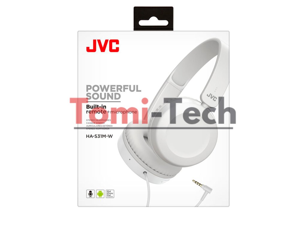 JVC HAS-31 WE káblové slúchadlá na uši s diaľkovým ovládačom a mikrofónom, biele
