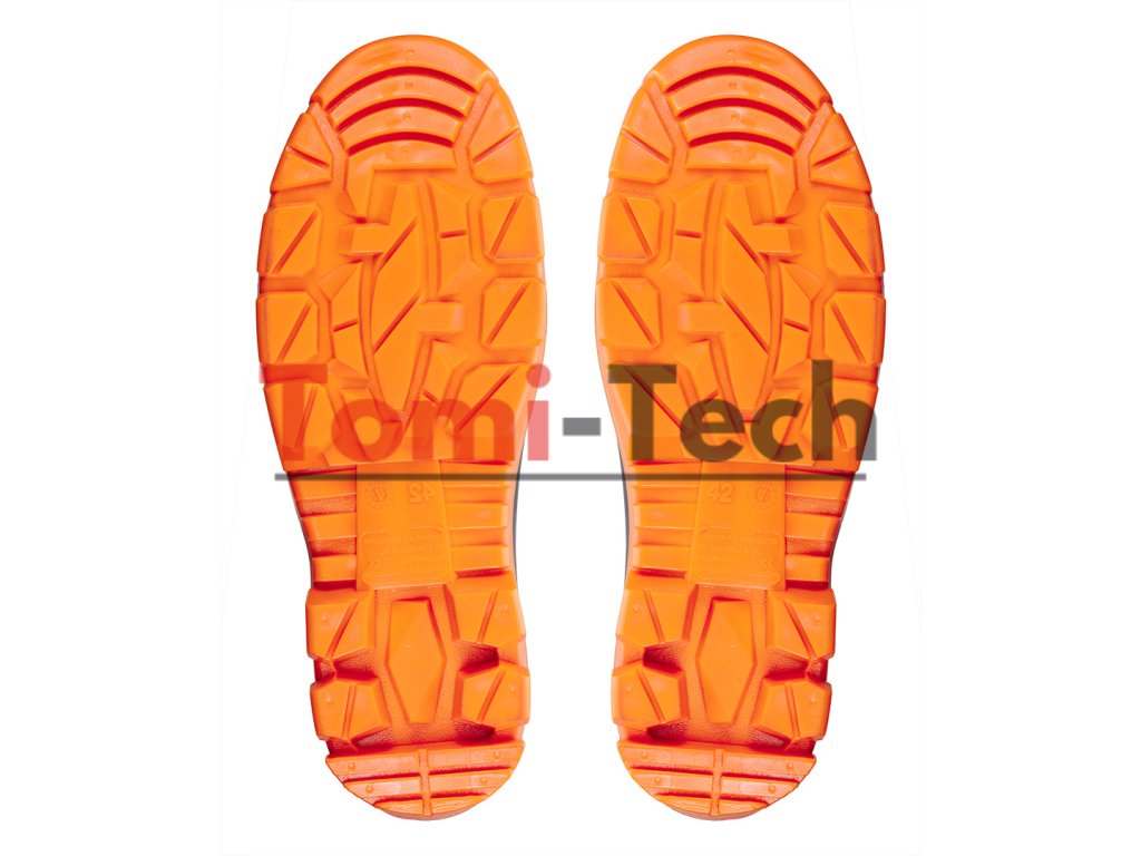 Pracovná obuv S4 SRC, veľkosť 40, PVC, polyamidová pletená podšívka, protišmyková podrážka s tlmiacim systémom, odolná voči oderu, olejom, benzínu a iným organickým rozpúšťadlám, uzavretá päta, antistatické a antibakteriálne vlastnosti vďaka použitiu prípravku Ultra Fresh, kompozitná špička, SRC - protišmyková úprava na keramických povrchoch pokrytých roztokom laurylsulfátu sodného (SLS) a na oceľových povrchoch pokrytých glycerolom, zhoda s normou EN20345Dodatočné parametre