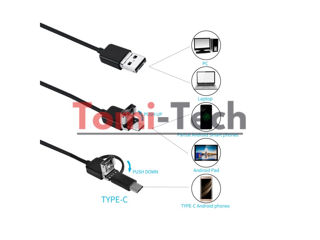 Kamera je vybavená 6 LED diódami, takže dosahuje dobré výsledky aj pri slabom osvetlení a jej kompaktný priemer 7 mm umožňuje jednoduché vloženie do úzkych štrbín. Vďaka ochrane IP67 je odolná voči vode a prachu, čo zaisťuje odolnosť a spoľahlivosť v náročných podmienkach. Vďaka napájaniu cez USB sa pohodlne a jednoducho používa a jeho široká kompatibilita so systémami Android a Windows umožňuje bezproblémové pripojenie k rôznym zariadeniam.