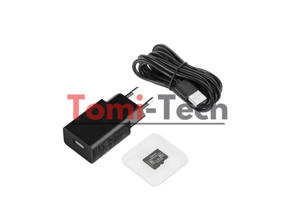 >Kamera sa dodáva s USB nabíjačkou (5 V, 1,5 A), káblom USB typu C a kartou micro SD pre jednoduché ukladanie a prenos dát. Certifikácie RoHS a CE zabezpečujú súlad s európskymi bezpečnostnými normami.