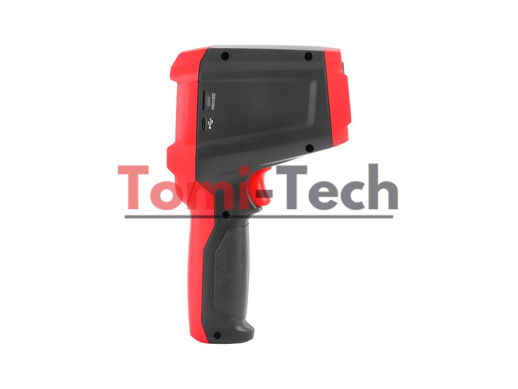Termokamera UTi32 sa vyznačuje robustnou konštrukciou s rozmermi 205 x 124 x 65 mm, ktorá zaisťuje odolnosť a odolnosť voči intenzívnemu používaniu. Zariadenie je napájané batériou 3,7 V/5 000 mAh, ktorá poskytuje viac ako 7 hodín nepretržitej prevádzky, ideálne pre dlhodobé kontroly. Fotoaparát je tiež vybavený portom USB-C a slotom pre kartu microSD pre jednoduchý prenos a ukladanie dát.