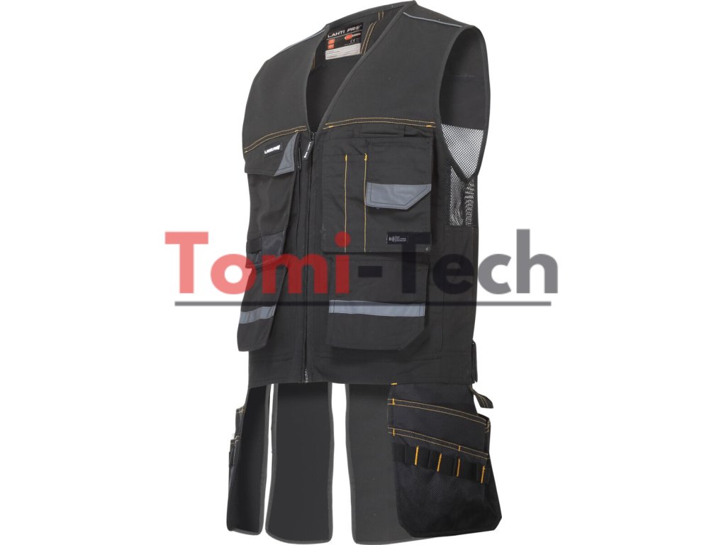 - Vrecká pre lepšiu priľnavosť vyrobené z pevného polyesterového materiálu Oxford 600D, ktoré je možné pripevniť dovnútra vesty. Predné vrecká s dodatočnou výstužou z polyesterového materiálu Dobby Oxford a pútkami na príslušenstvo