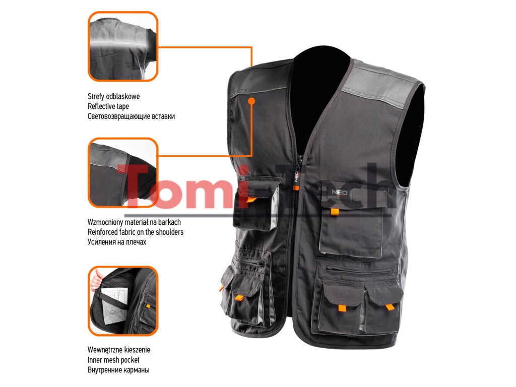 Pracovná vesta, veľkosť XL/56, 35 % bavlna, 65 % polyester, 267 g/m2, výstuhy z oxfordskej tkaniny, vystužené vrecká, reflexný prvok na chrbte, CE, EN ISO 13688:2013Dodatočné parametre