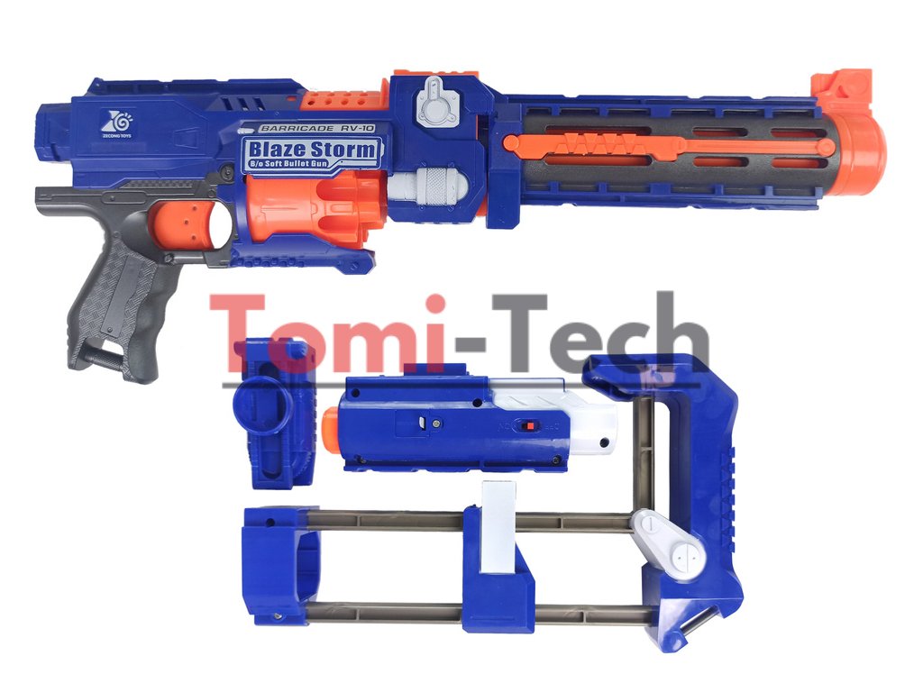 Súprava obsahuje valčekovú pušku, 10 šípok s hladkým hrotom a 10 šípok s prísavkou. Hračka vyžaduje na prevádzku 6 batérií typu "AA" - nie sú súčasťou balenia.