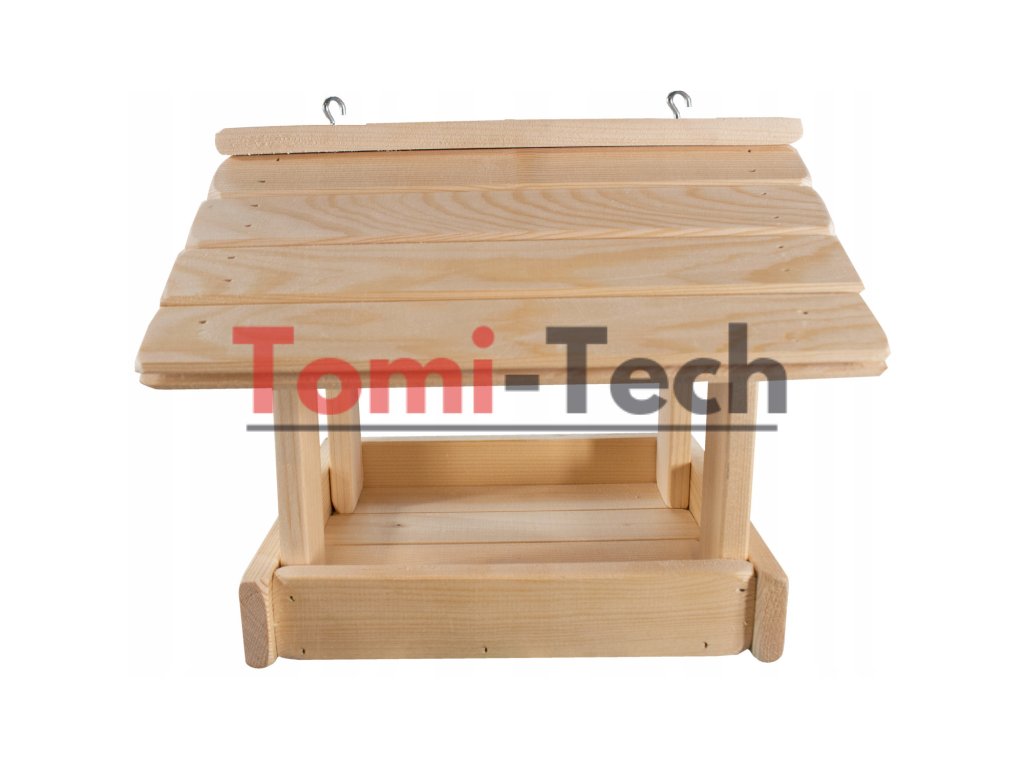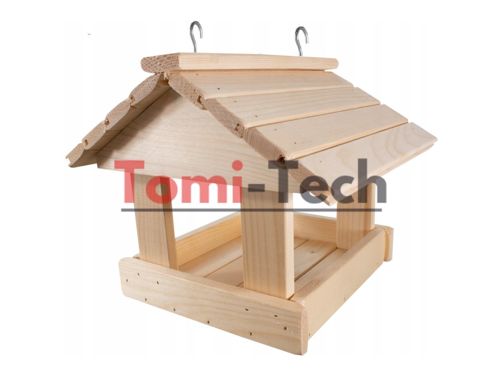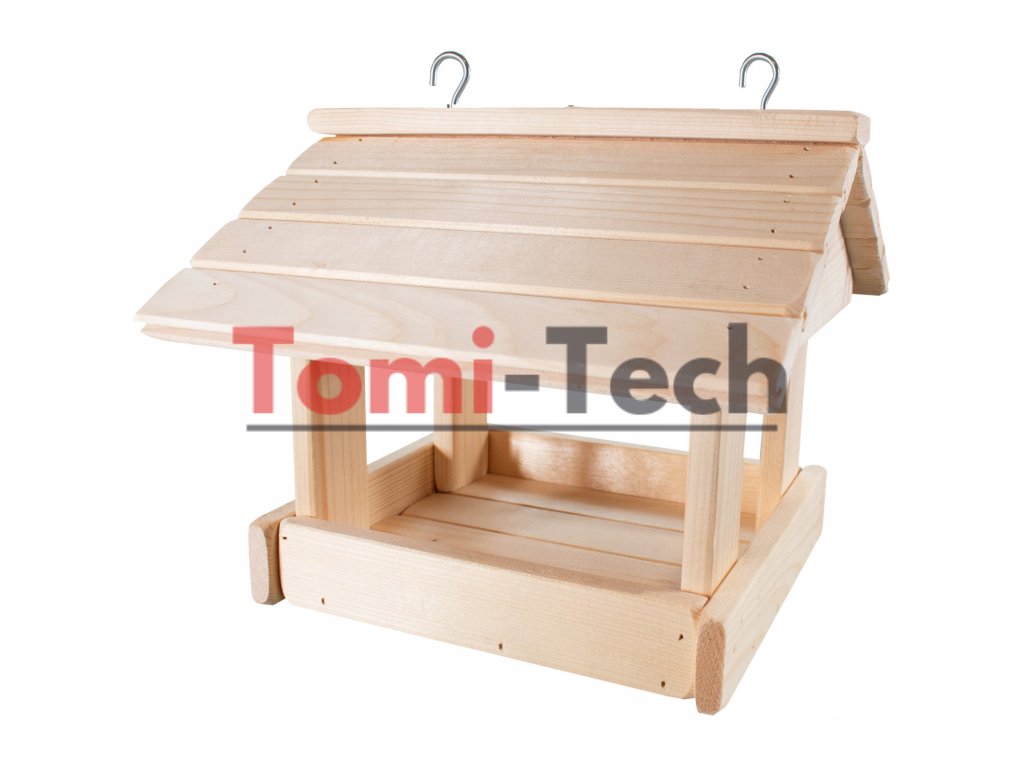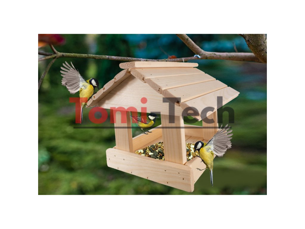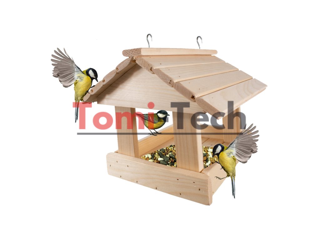 Pevné kŕmidlo pre vtáky vyrobené zo suchého smrekového dreva, ktoré zaisťuje stabilitu a odolnosť.