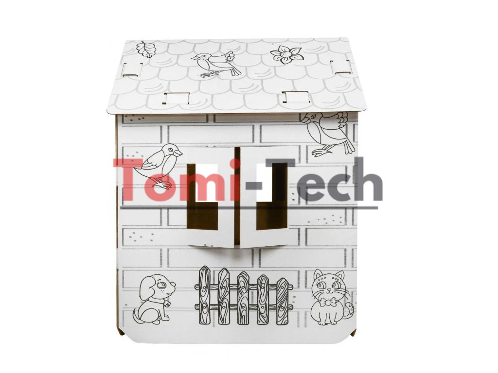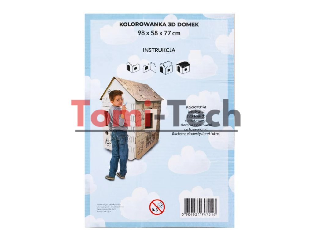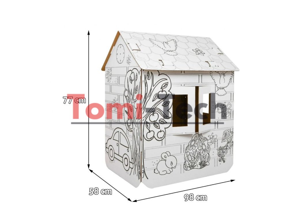 Kartónový domček je určený pre deti od 3 rokov. Hračka má pohyblivé prvky, ako sú okná a dvere, ktoré sa dajú otvárať. Hrou s týmto domčekom bude dieťa stimulovať svoju fantáziu, rozvíjať kreativitu a umelecké schopnosti. Po zložení je možné domček maľovať (súprava neobsahuje maliarske doplnky). K dispozícii verzia pre dievčatá a chlapcov.