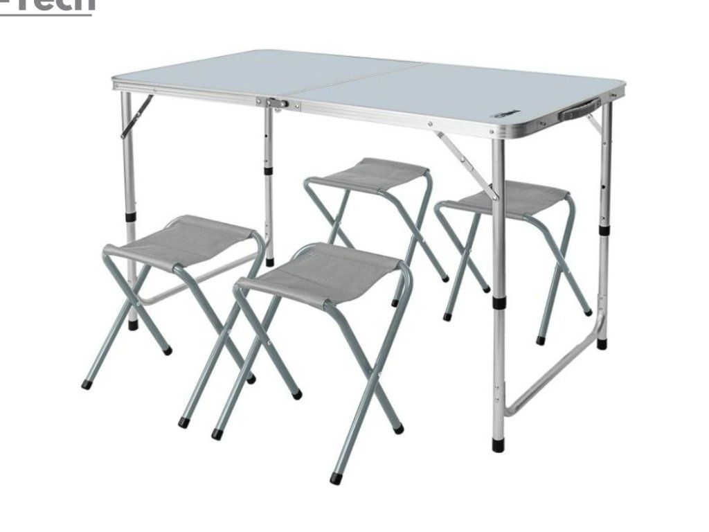 Kempingová súprava stola a 4 stoličiek zložená do kufra