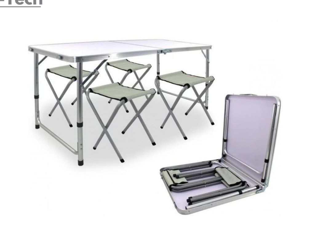 Rozkladacia kempingová zostava pozostáva zo stola a 4 stoličiek. Ideálne na víkendové výlety s rodinou, alebo priateľmi. Kempingová zostava pre stolovanie a posedenie v prírode je vhodná pre deti aj dospelých. Kempingová rozkladacia zostava, ktorú ľahko hodíte do kufra svojho auta a vyrazíte za dobrodružstvom na výlet. Prenesiete ju kamkoľvek potrebujete. Pre každého turistu je dôležité, že zaberá naozaj veľmi málo miesta, preto môžete rátať s batožinou na viac.