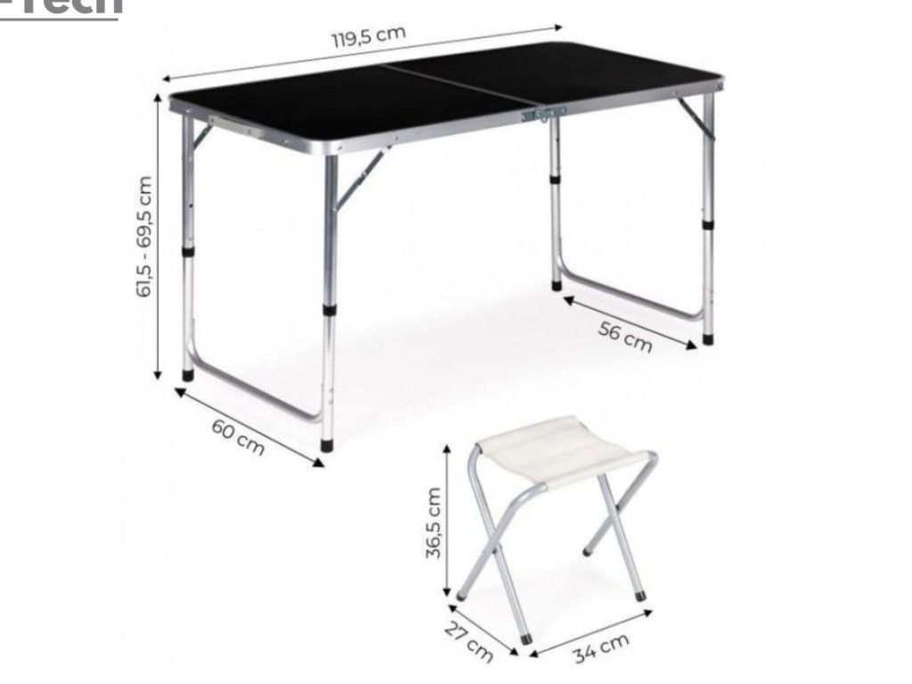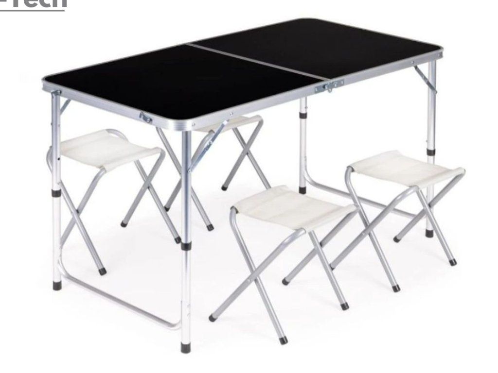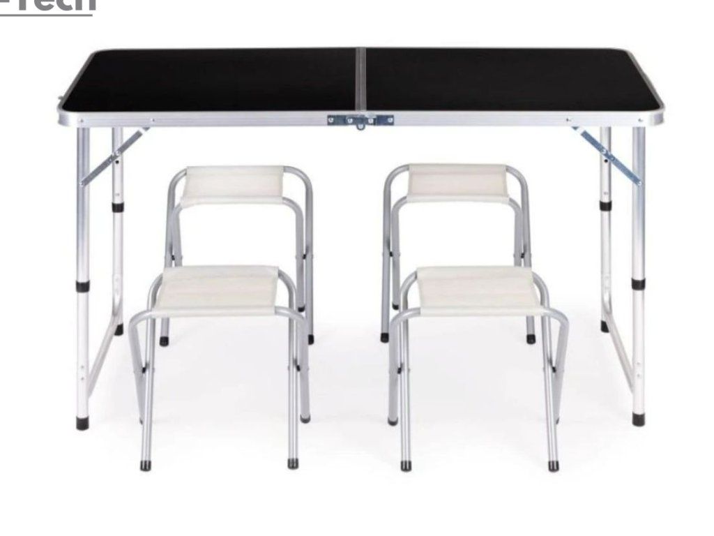 - Súprava stôl + 4 stoličky bude perfektnou súpravou na cestovanie alebo dovolenkové výlety.