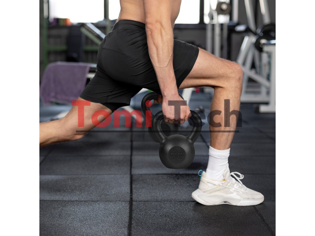 Kettlebell je vybavený rukoväťou, ktorá poskytuje bezpečný a pohodlný úchop, čo je kľúčové pri vykonávaní dynamických pohybov. Priezor úchopu poskytuje dostatok priestoru pre vaše ruky, čo umožňuje plynulé a pohodlné prechody medzi rôznymi cvikmi.