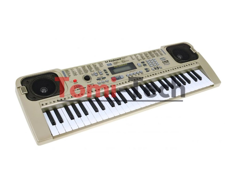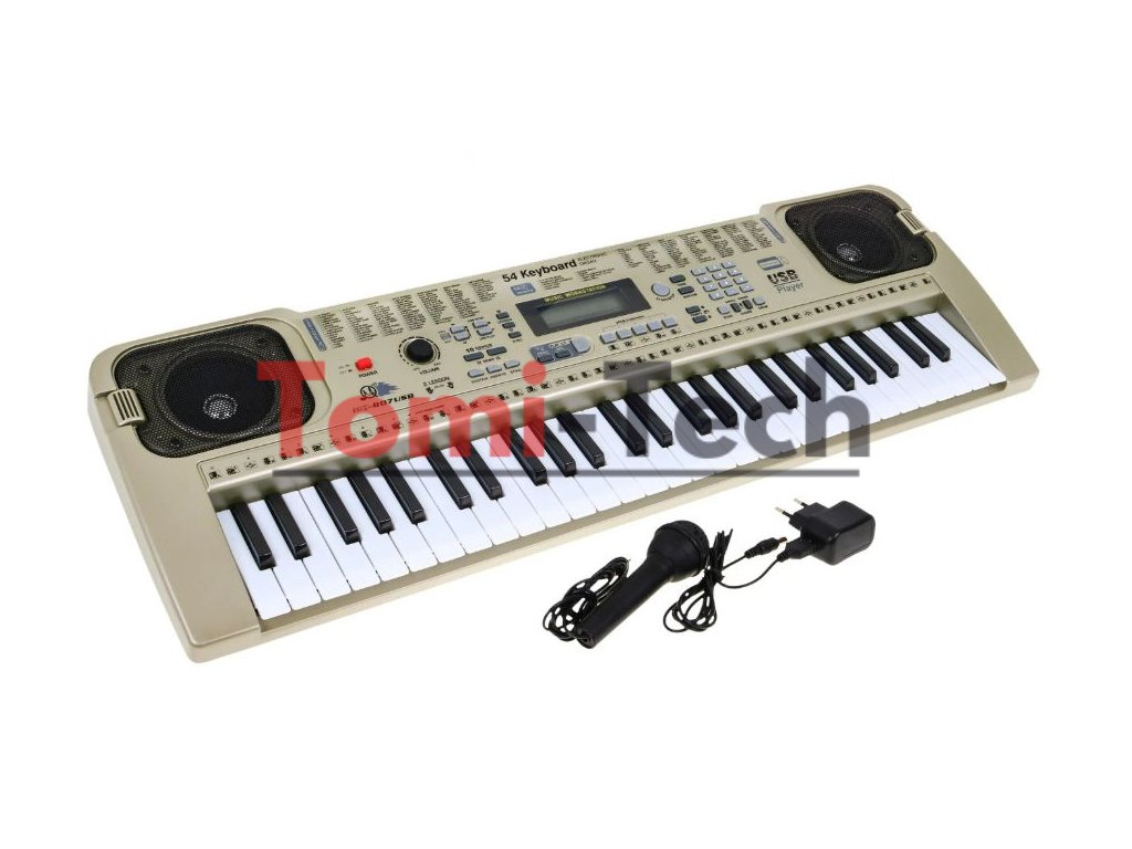 Funkcia keyboardu: digitálny display, tlačidlá 100 ton (napr. piano, violončelo, jazzová gitara, trumpeta, saxofón, flauta, hoboj), tlačidlá 100 rytmov (napr. valc, tango, ballada, disco, country, rumba…), tlačidlo demo one a demo all (10 melódií), synchronizácia, echo, USB stop a USB play, niekoľko druhov bubnov, akordy – single (jednotlivé akordy hrané spolu), finger (jednotlivé akordy hrané zvlášť), regulácia hlasitosti kláves a regulácia hlasitosti hudby z USB, regulácia tempa, tlačidlo štart / stop, nahrávanie, program, play, vstup pre mikrofón, vstup pre ďalší reproduktor