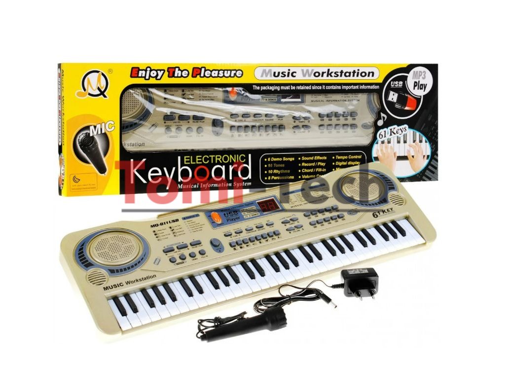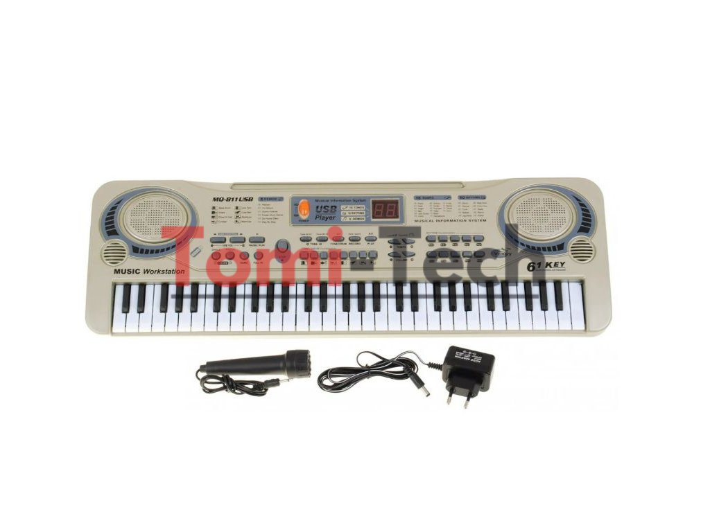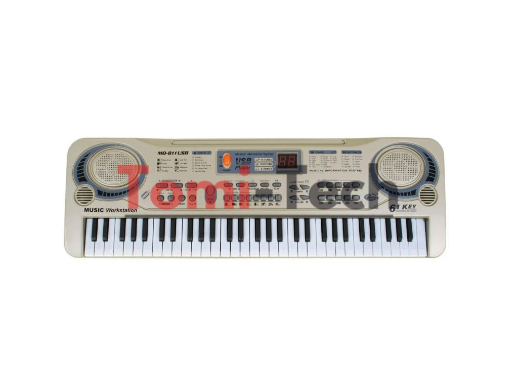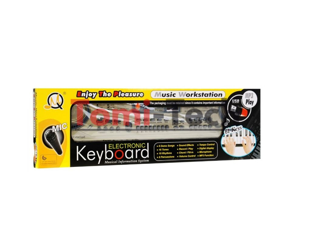 Funkcia kláves: 16 tónov,10 rytmov,6 demo piesní, Tlačidlo na zapínanie bicie,CONTROL / hlasitosť MP3,Regulácia hlasitosti,Zmena rýchlosti tempa,Tlačidlo ŠTART/STOP,Nahrávanie a prehrávanie,Programovanie,Tlačidlo SE / PLAY, USB vstup,Mikrofón,1 x reproduktor,Zosilňovač,Digitálny displej