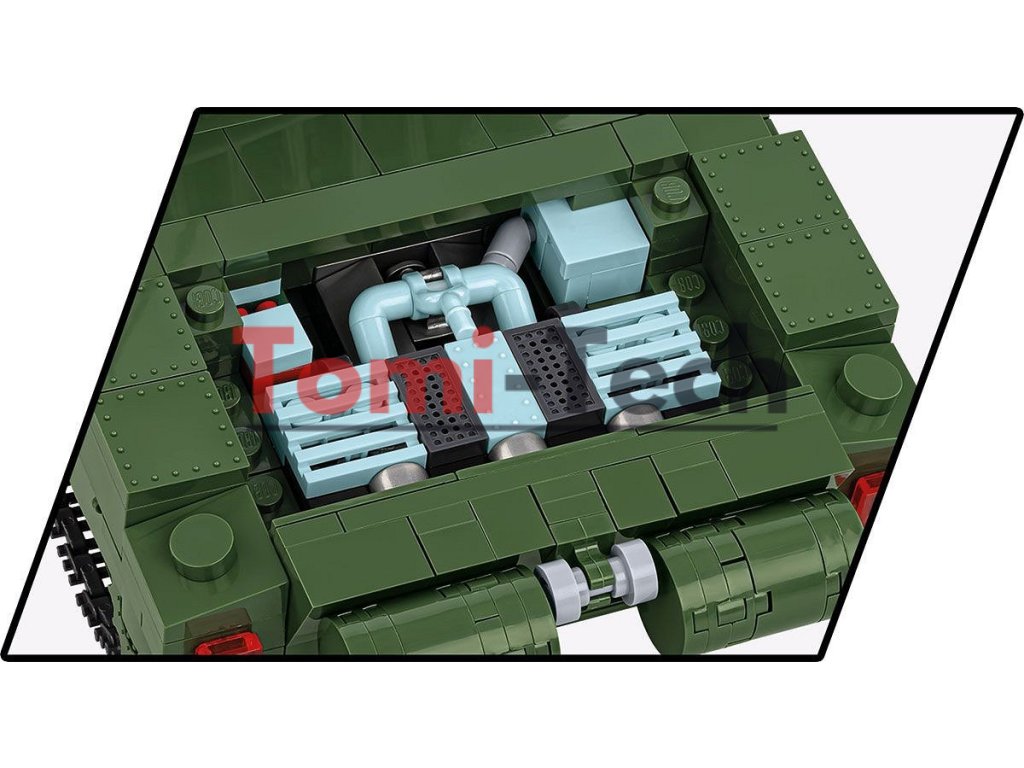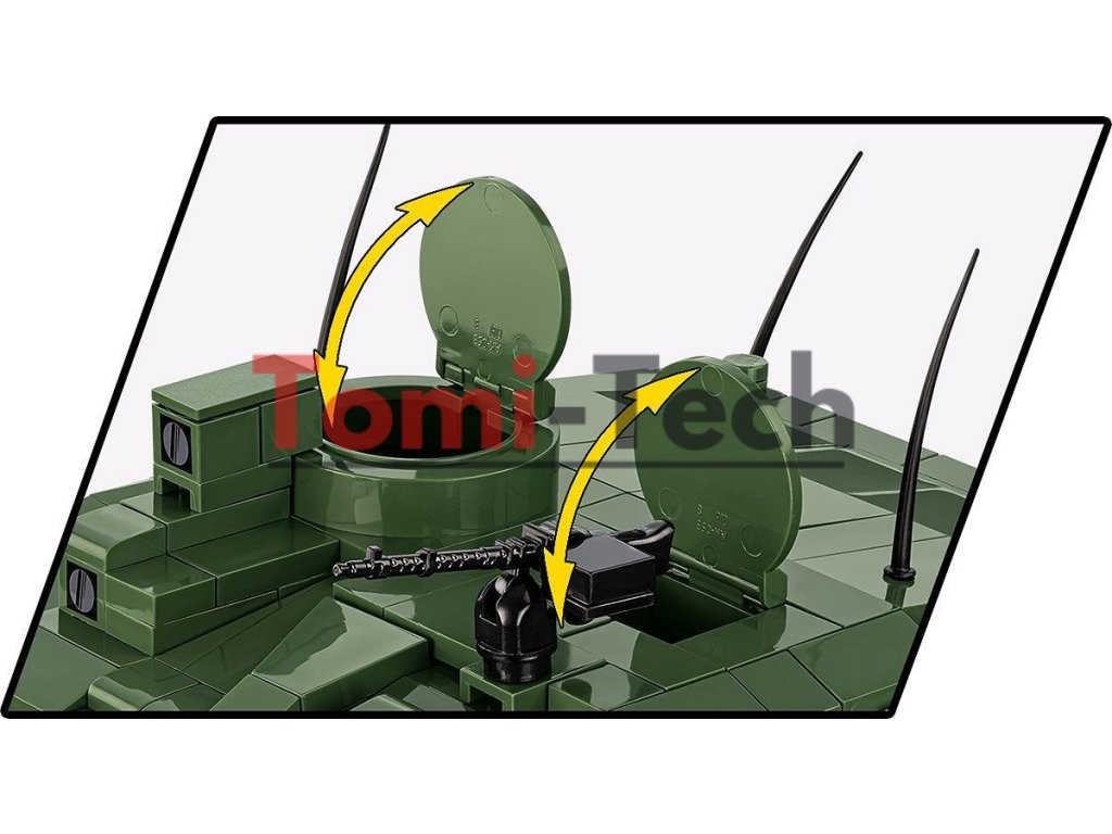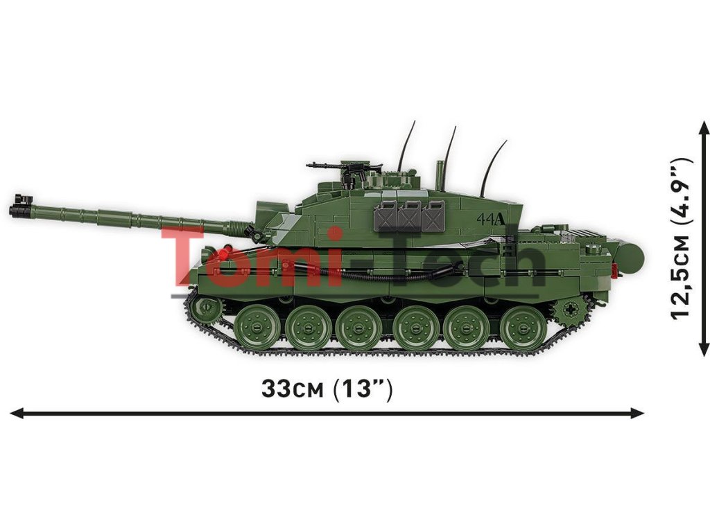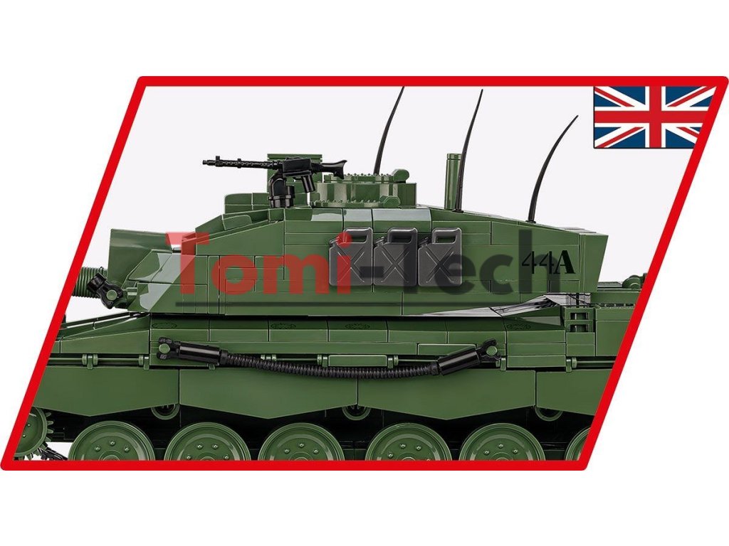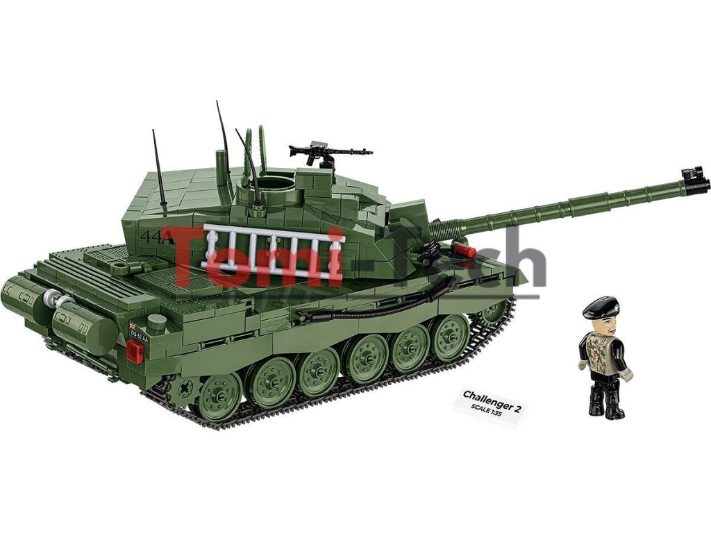 So stavebnicou COBI si môžete postaviť moderný, súčasný tank Challenger 2. Tento model vstúpil do britskej služby v roku 1998 a neustále sa vyvíja. Tanky tohto typu sú v prevádzke aj v Ománe a na Ukrajine. Model z kociek bol reprodukovaný v mierke 1:35 s použitím 954 prvkov. Tank zodpovedá rozmerom iných pozemných vozidiel vydaných ako súčasť kolekcie ozbrojených síl. Špeciálne pre tento model sme vyvinuli novú kocku v tvare veľmi charakteristickej hlavne tanku Challenger. Pod servisným poklopom sa nachádza motor z kocky. Model obsahuje pohyblivé prvky, ako sú kolesá, pásy, otočná veža a delo. Poklop veže sa otvára a možno ho použiť na umiestnenie priloženej figúrky tankistu. Figúrka sa dodáva s dvoma sadami pokrývok hlavy (prilba + baret s britským znakom). Sada obsahuje dve sady označení, z ktorých si môžete vybrať. Tento tank si môžete postaviť v ukrajinskej alebo britskej verzii.