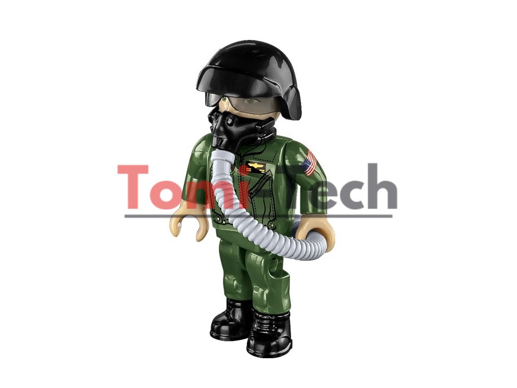 Figúrka pilota - Sada obsahuje figúrku pilota v reprodukovanej americkej uniforme s originálnymi znakmi, vybavenú prilbou a kyslíkovou maskou s hadicou. Pilota je možné umiestniť do otváracieho kokpitu alebo vedľa modelu lietadla.