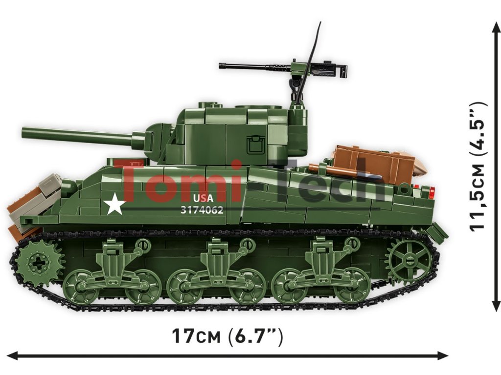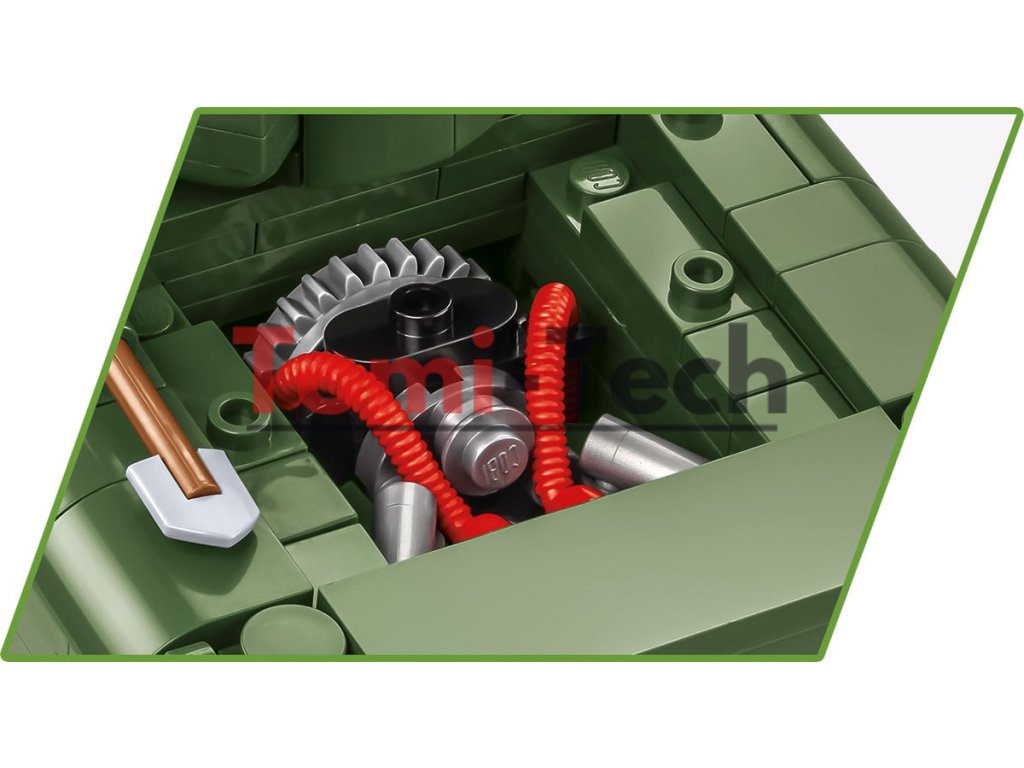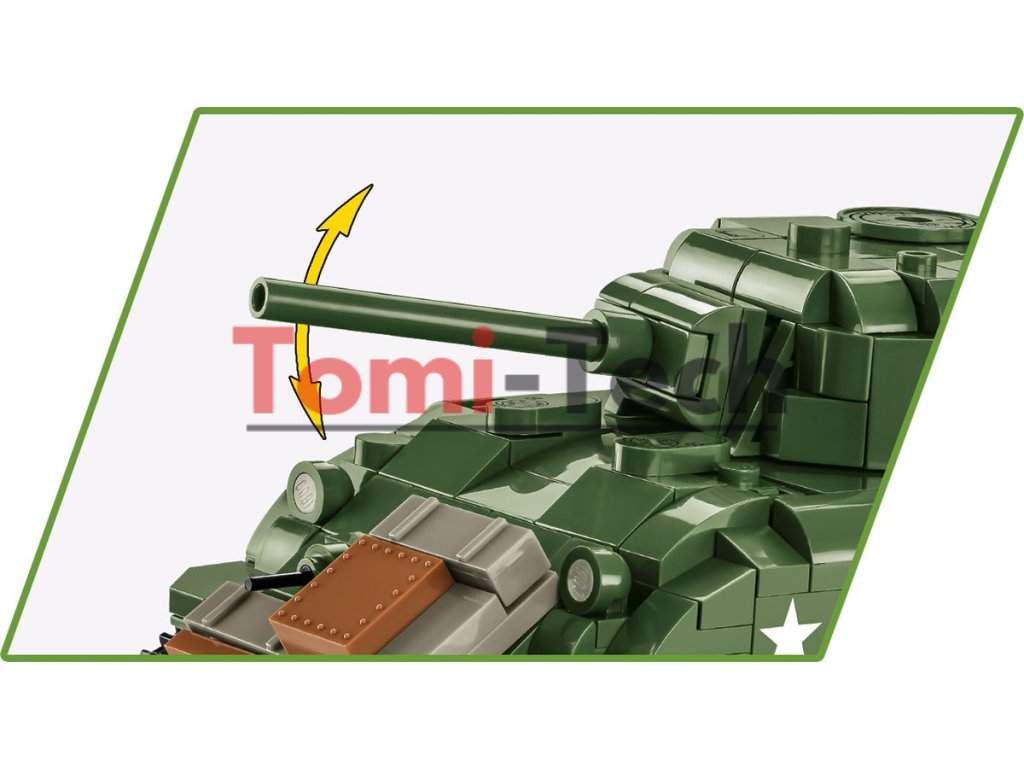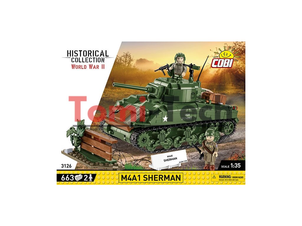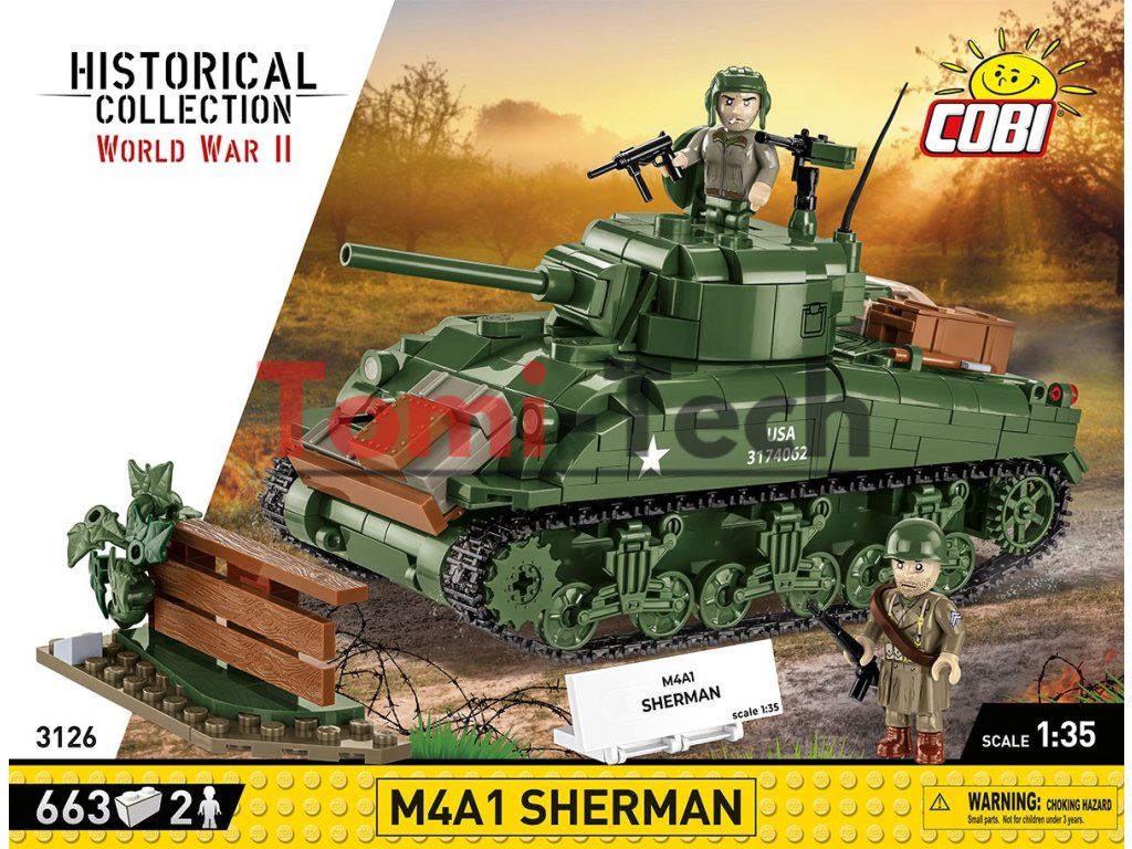 Sherman postavený z kociek bol starostlivo navrhnutý v mierke 1:35 s použitím 663 dielov. Tank má funkčné pásy, otočnú vežu, pohyblivú hlaveň, otvárateľný poklop a servisný poklop s motorom postaveným z kociek pod ním. Súprava obsahuje figúrku amerického tankistu s prilbou a samopalom M3 „Greaser“. Druhá figúrka zobrazuje pešiaka oblečeného v hrubom kabáte a ozbrojeného puškou M1 Garand. Kocky obsahujú vysoko kvalitné potlače, ktoré odrážajú označenie a detaily tanku, ako aj detaily uniformy veliteľa tanku a pešiaka. Sada obsahuje aj prvky prostredia: časť plota a živý plot. Táto sada bola starostlivo vyrobená a je perfektným rozšírením obľúbenej série Historical Collection! Fanúšikovia histórie a stavebných kociek si tu nájdu niečo pre seba!