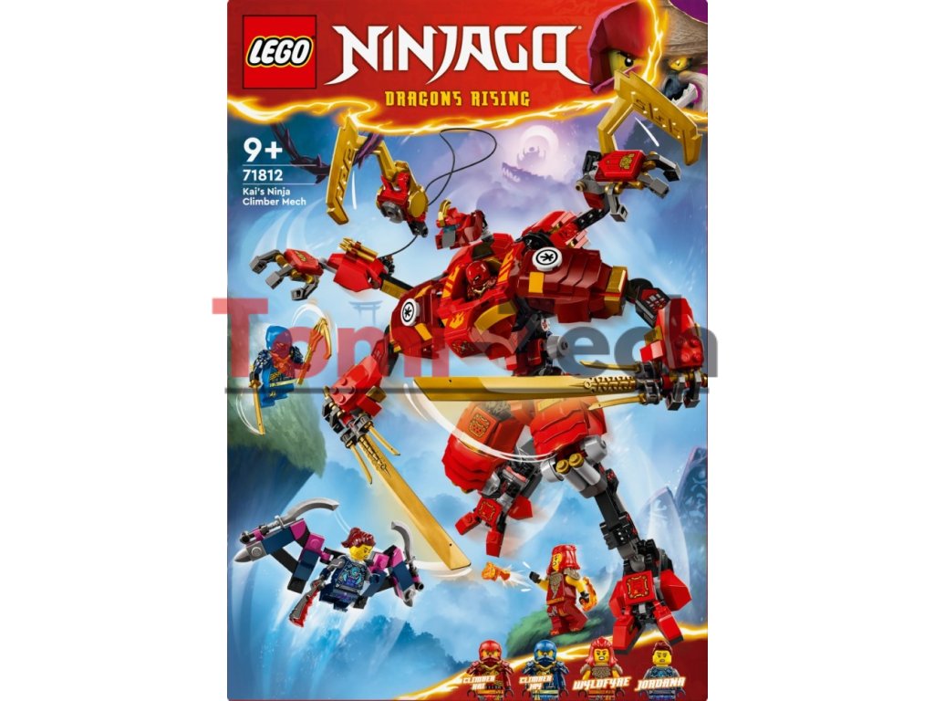 NINJAGO Kaiov lezecký nindža robot 71812; detská hracia sada so zostaviteľnou figúrkou a 4 minifigúrkami; narodeninový darček pre chlapcov a dievčatá od deviatich rokov, ktorí si radi hrajú samostatne