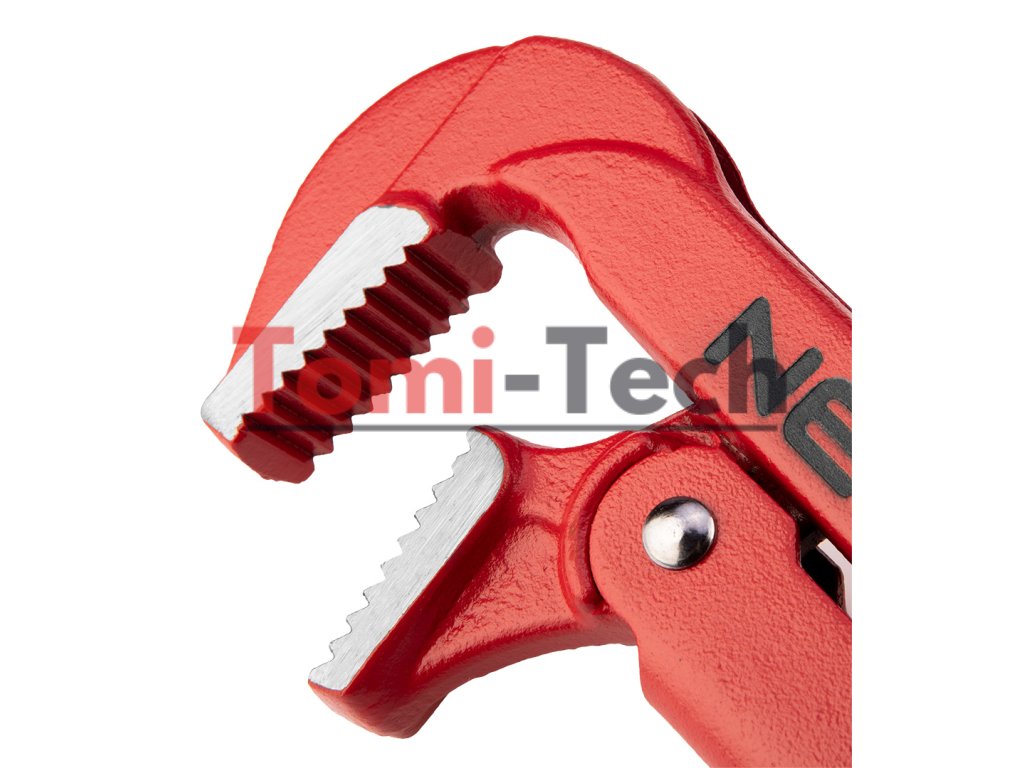 Hasák na rúry typu „90°“, dĺžka 330 mm, rozostup čeľustí 1,0“, chróm-vanádiová oceľ, kované a brúsené čeľuste, nastaviteľná skrutka, závitovkový prevodový mechanizmus, čeľuste so zubamiDodatočné parametre