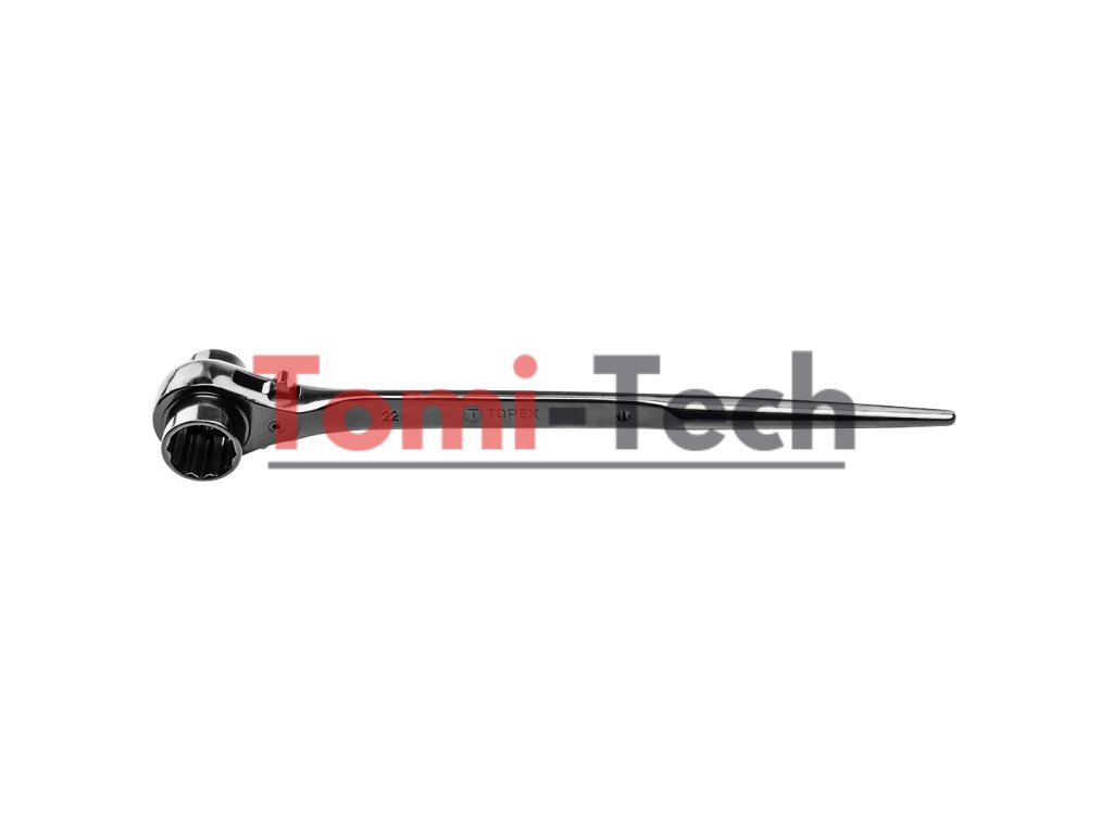 Kľúč na lešenie TOPEX 19x22 mm (ref. č. 38D300). Kovaný, kalený, oxidovaný s ostrým hrotom, dĺžka 310 mm.Dodatočné parametre